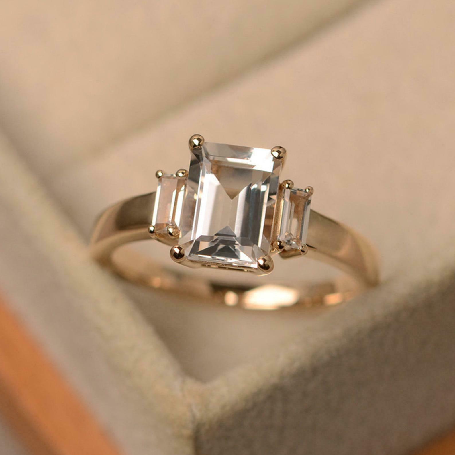 1.5ct Engagement Ring Emerald Cut Diamond Accents Trilogy 14k Rose Gold Finish