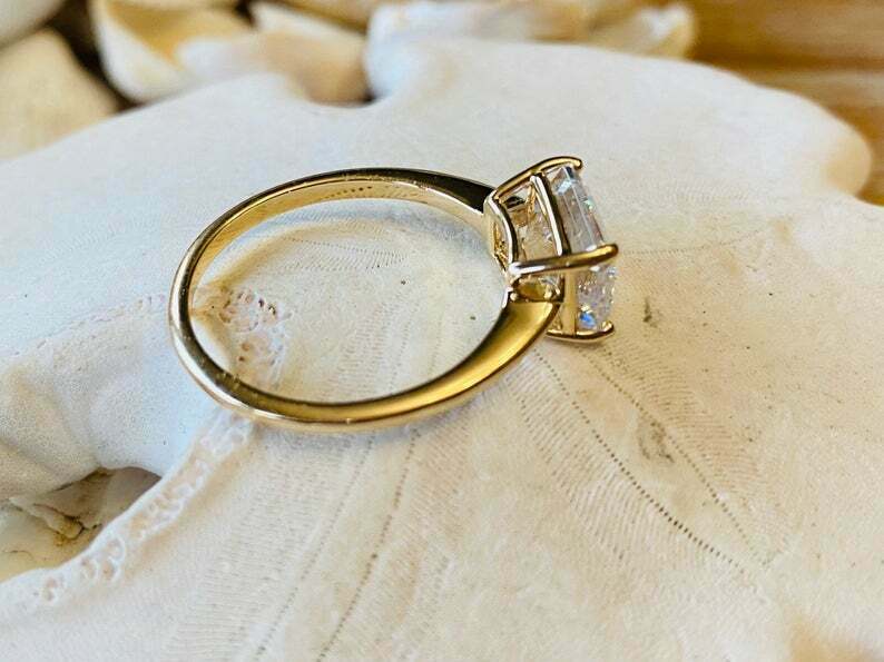 1.5ct Engagement Ring Emerald Cut Diamond Solitaire Design 14k White Gold Finish
