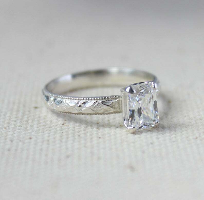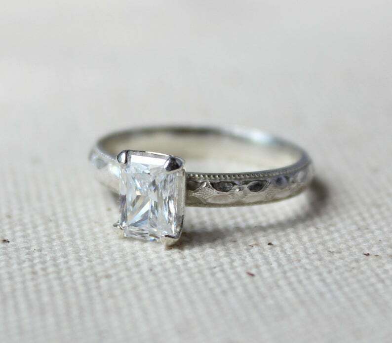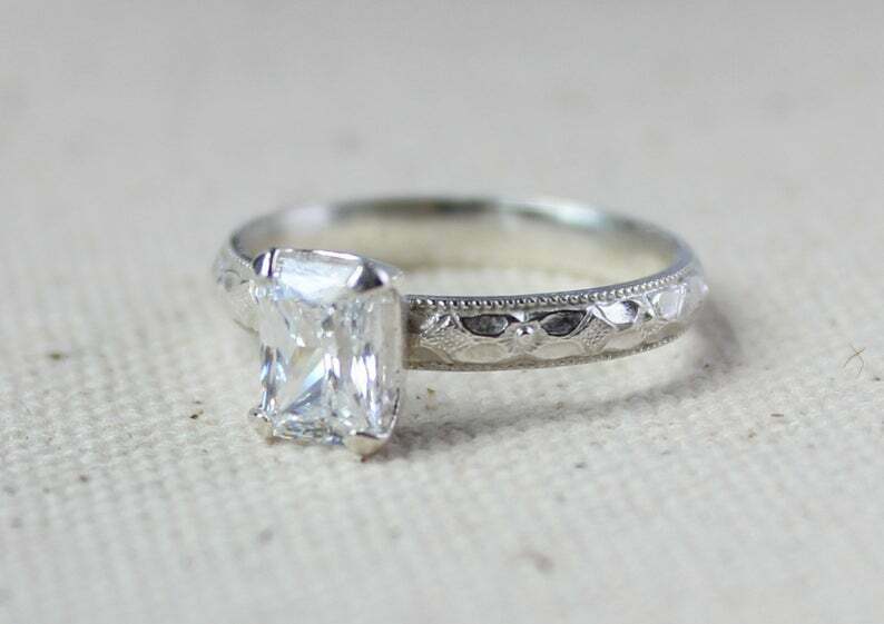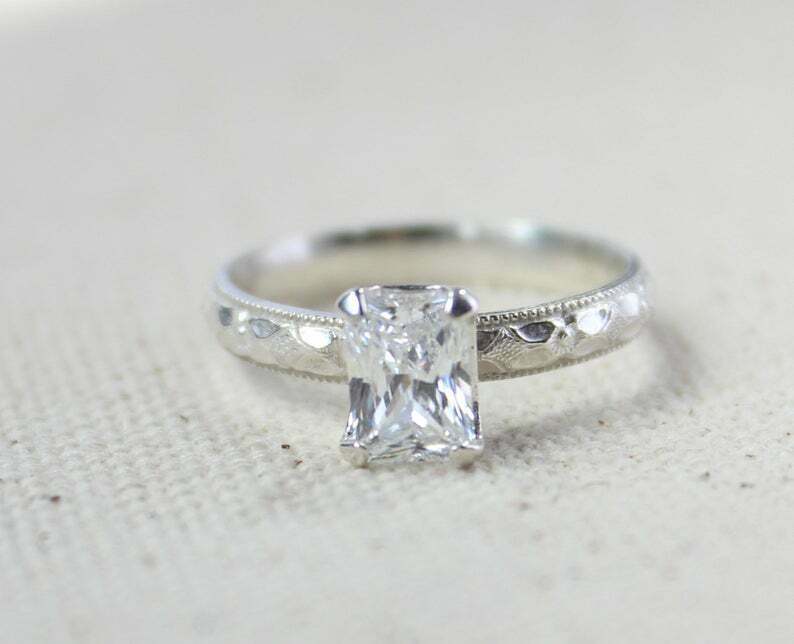 1.5ct Engagement Ring Radiant Cut Diamond Milgrain Solitaire 14k White Gold Over