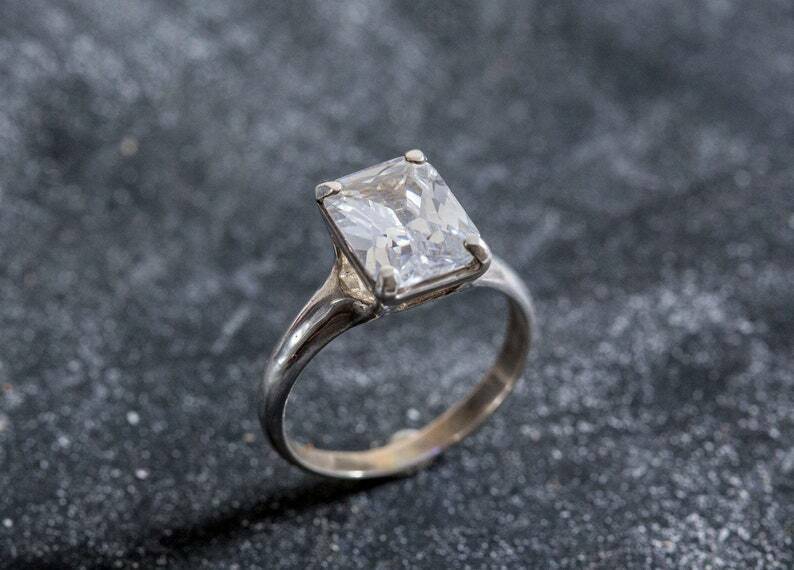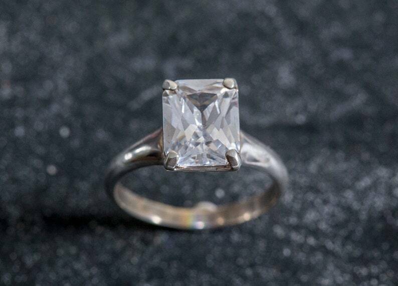 1.5ct Engagement Ring Radiant Cut Diamond Solitaire Design 14k White Gold Finish