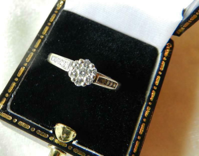 1.5ct Engagement Ring Round Cut Diamond Cluster Design 14k White Gold Finish