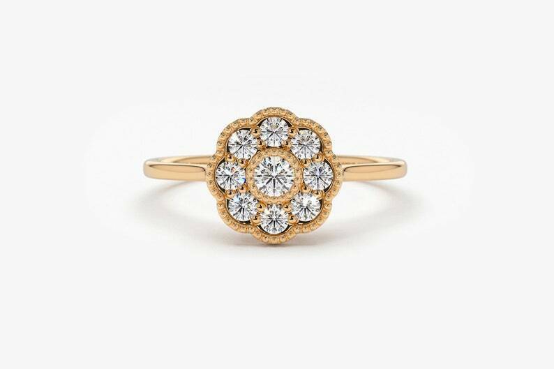 1.5ct Engagement Ring Round Cut Diamond Floral Minimalist 14k Rose Gold Finish