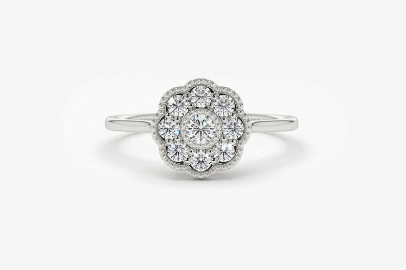 1.5ct Engagement Ring Round Cut Diamond Floral Minimalist 14k White Gold Finish