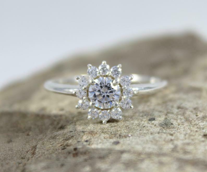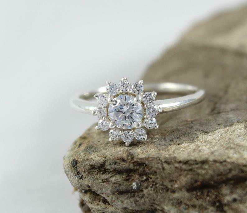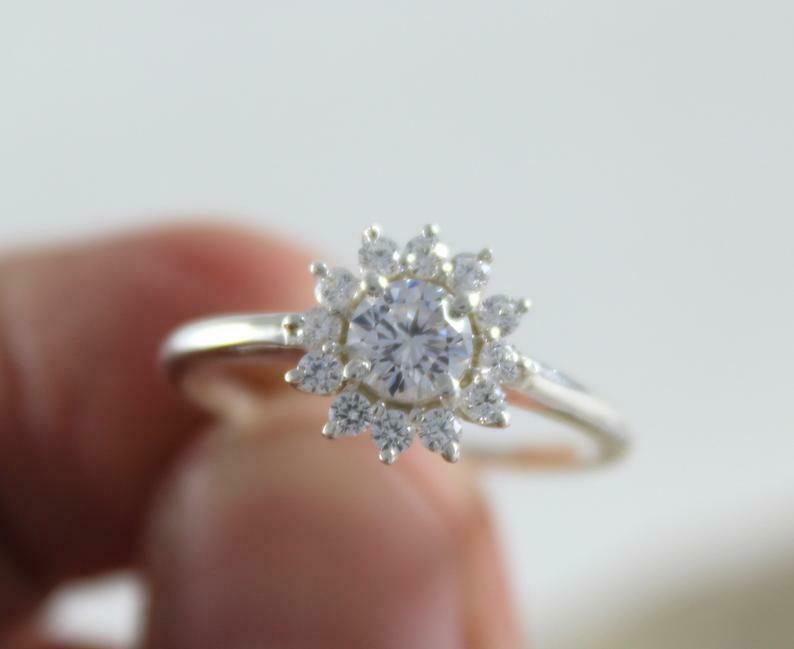1.5ct Engagement Ring Round Cut Diamond Floral Solitaire 14k White Gold Finish