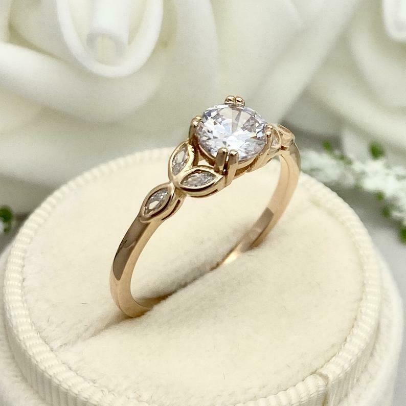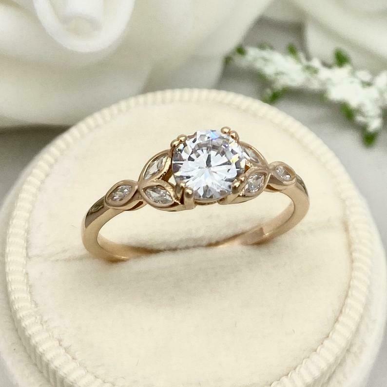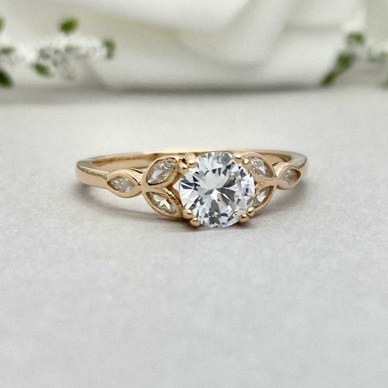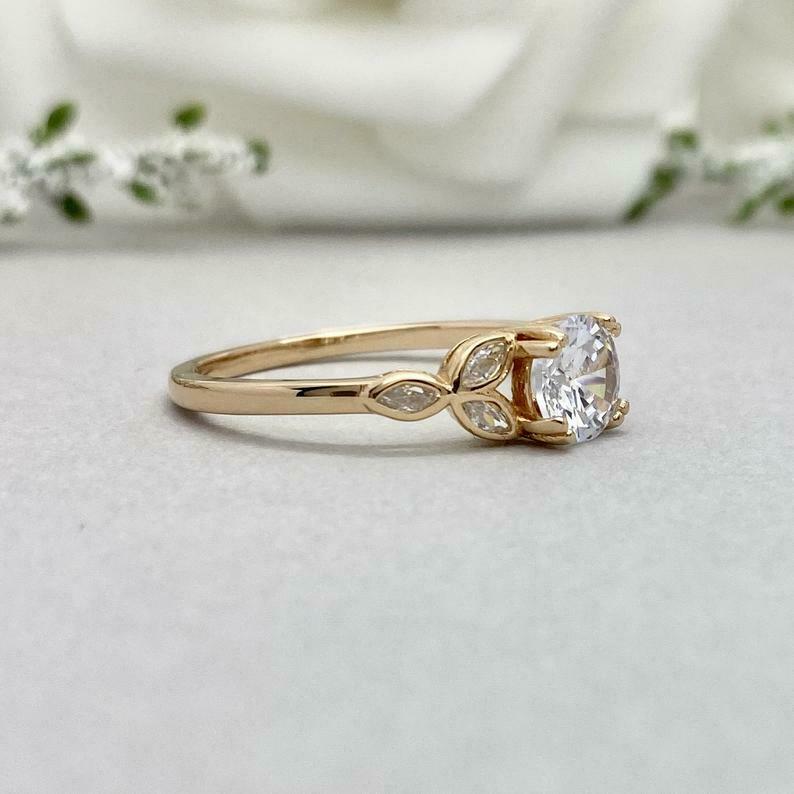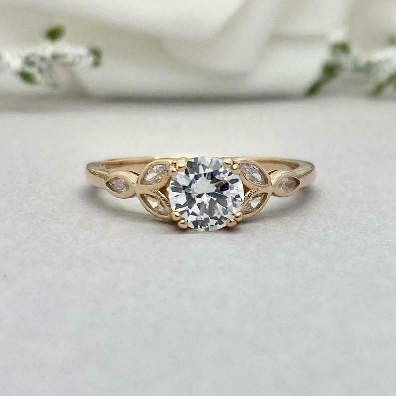 1.5ct Engagement Ring Round Cut Diamond Leaf Marquise Accent 14k Yellow Gold Over