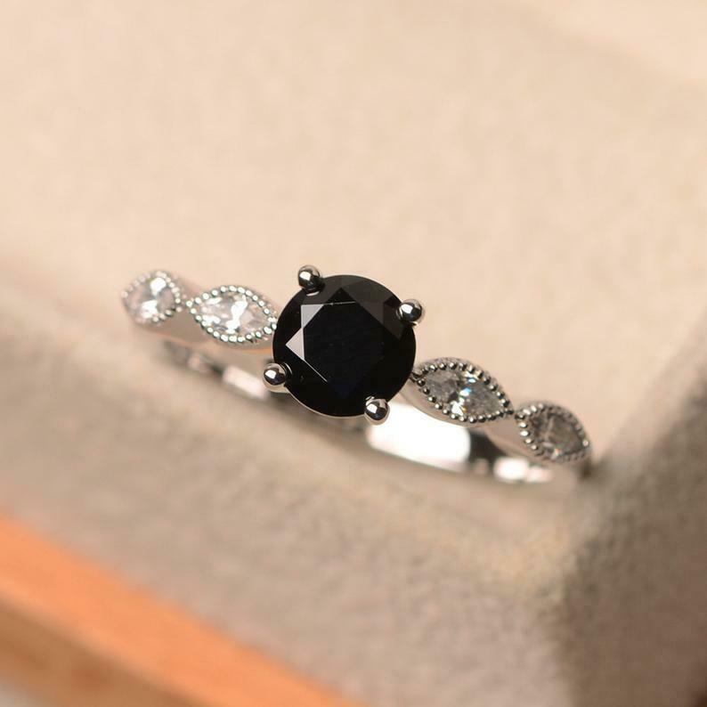 1.5ct Engagement Ring Round Cut Black Diamond Marquise Accent 14k White Gold Finish