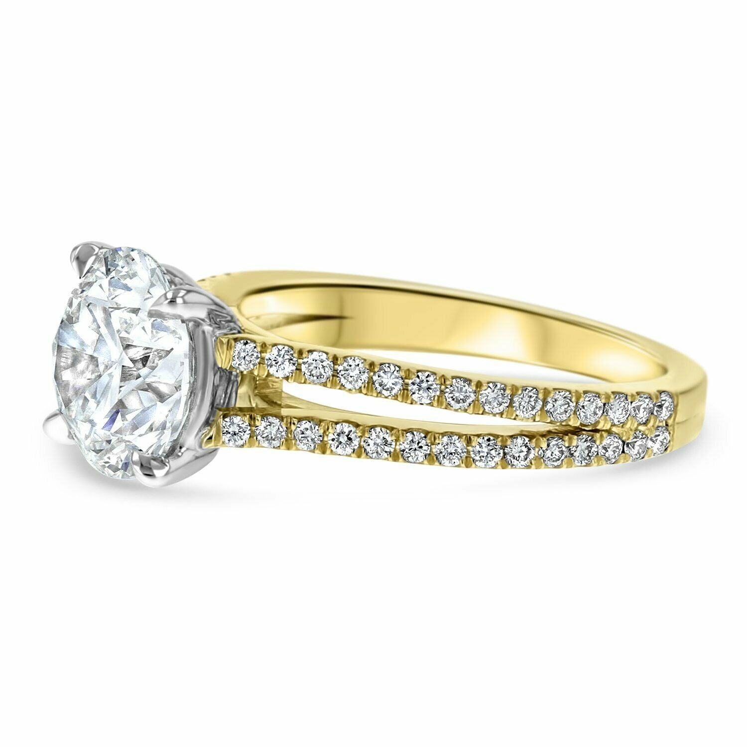 1.5ct Engagement Ring Round Cut Diamond Split Shank Design 14k YellowGold Finish