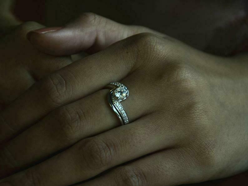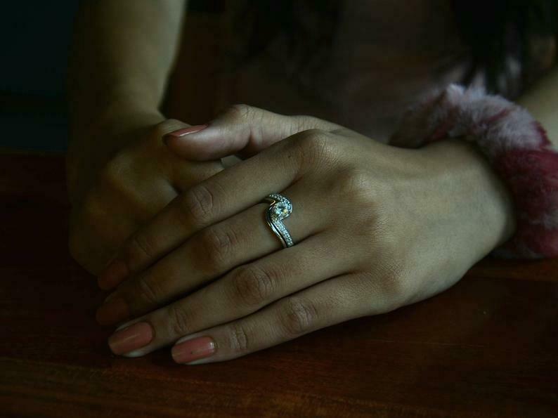 1.5ct Engagement Ring Round Cut Diamond Swirl Bridal Set 14k White Gold Finish