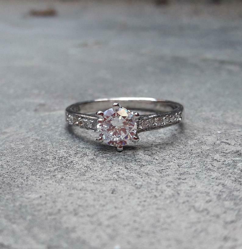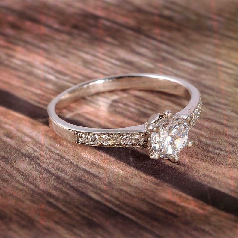 1.5ct Engagement Ring Round Cut Diamond Accent with Solitaire 14k White Gold Finish