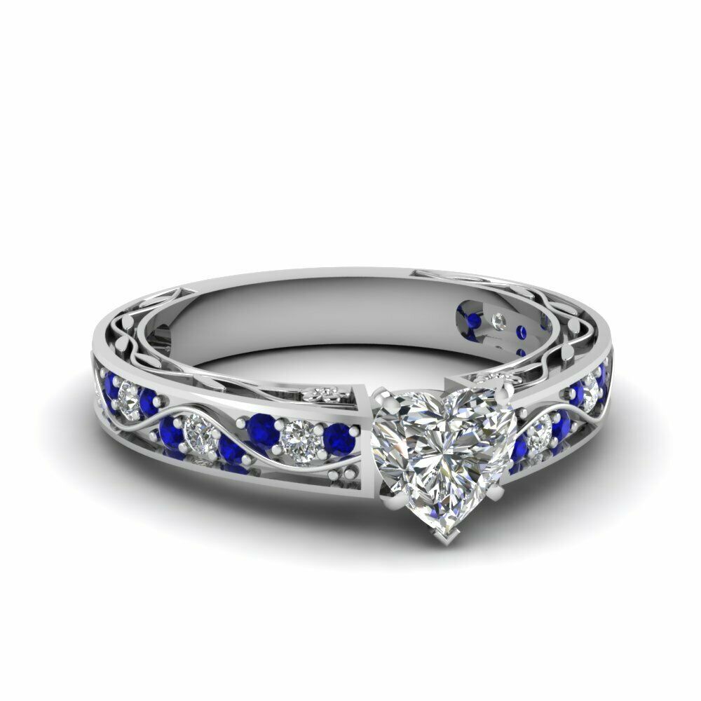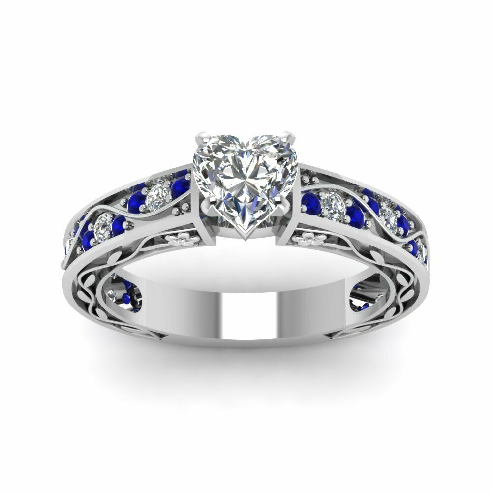 1.5ct Heart Cut Antique Filigree Solitaire Engagement Ring 14k White Gold Finish