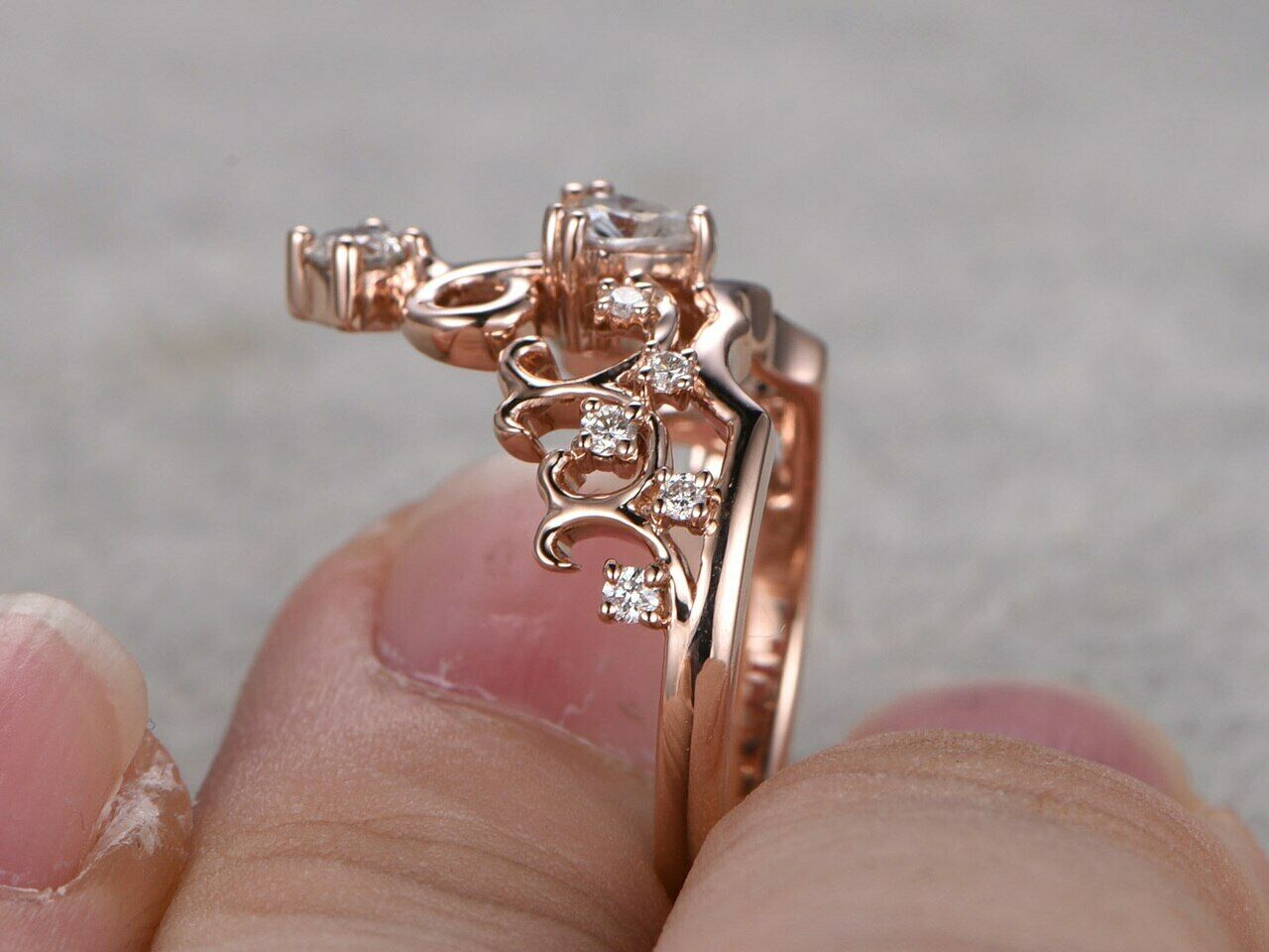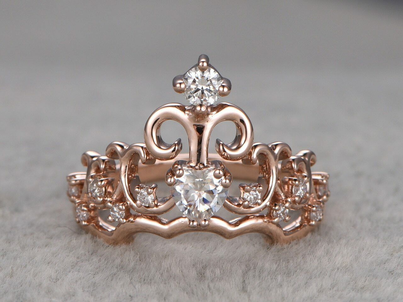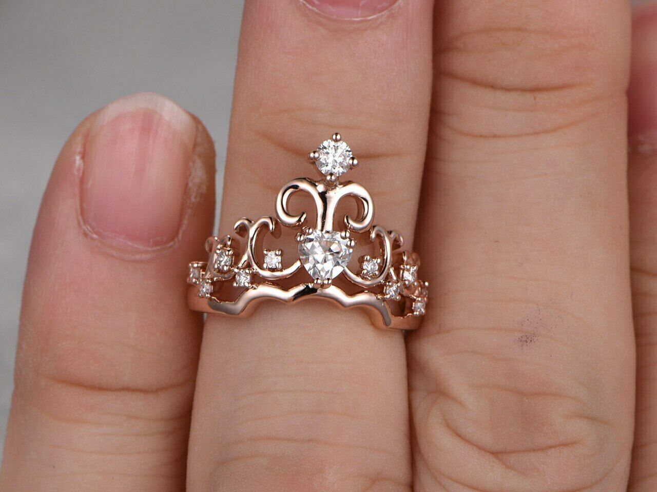 1.5ct Heart Cut Diamond Engagement Ring Princess Crown Style 14k Rose Gold Over