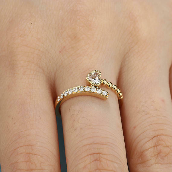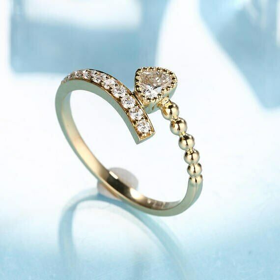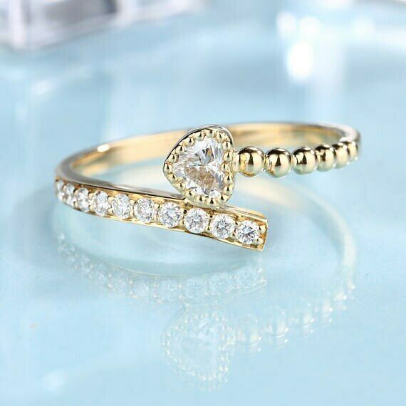1.5ct Heart Cut Diamond Engagement Ring Twisted Bypass Bead 14k Yellow Gold Over