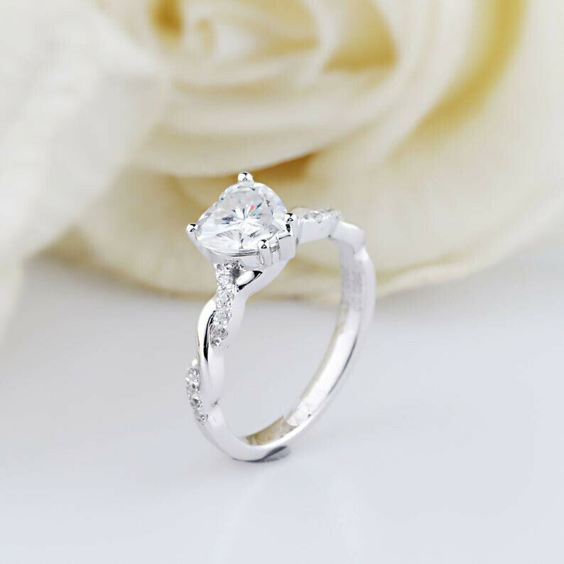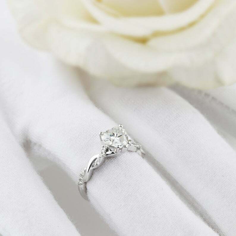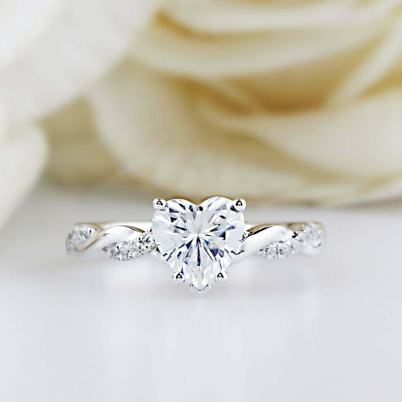 1.5ct Heart Cut Diamond Engagement Ring Twisted Infinity 14k White Gold Finish