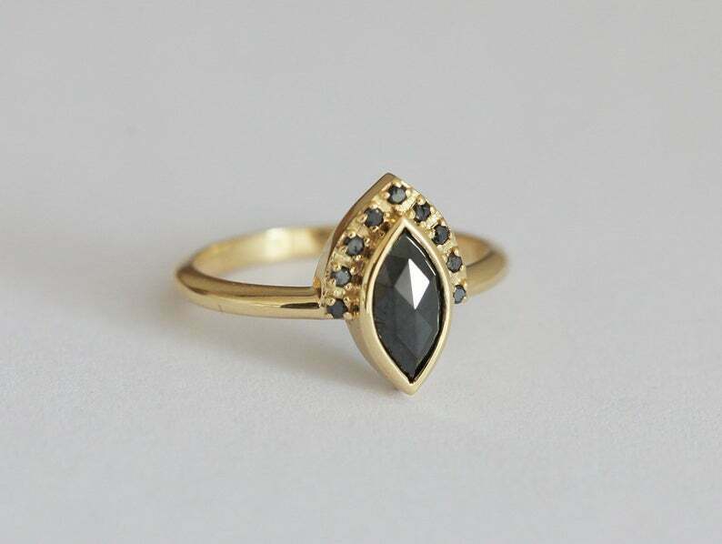 1.5ct Marquise Cut Black Diamond Engagement Ring 14k Yellow Gold Over Bridal Set