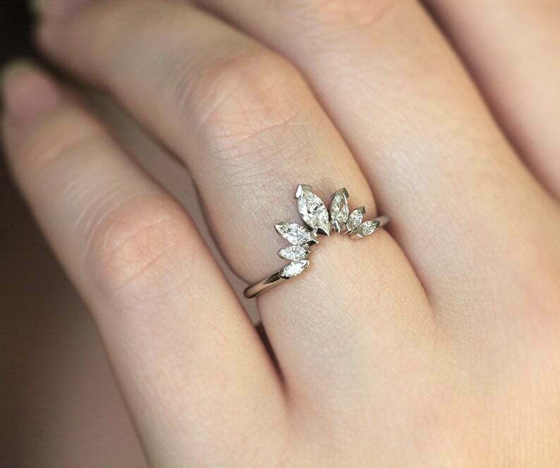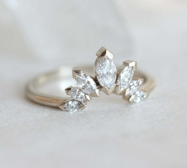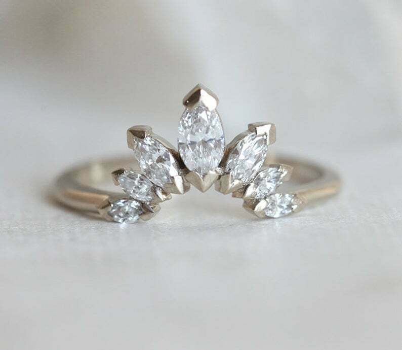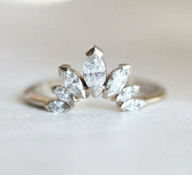1.5ct Marquise Cut Diamond Engagement Ring 14k White Gold Finish Crown Tiara