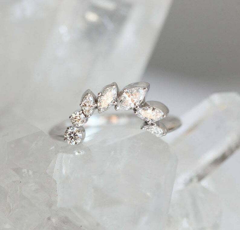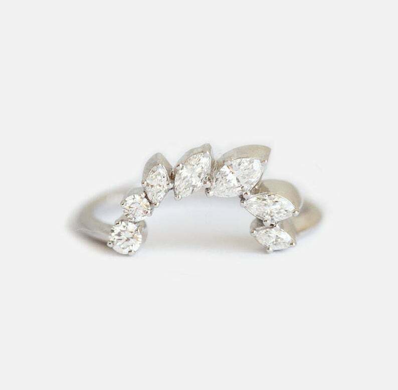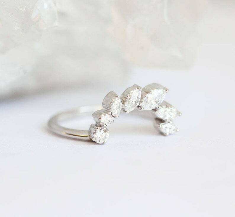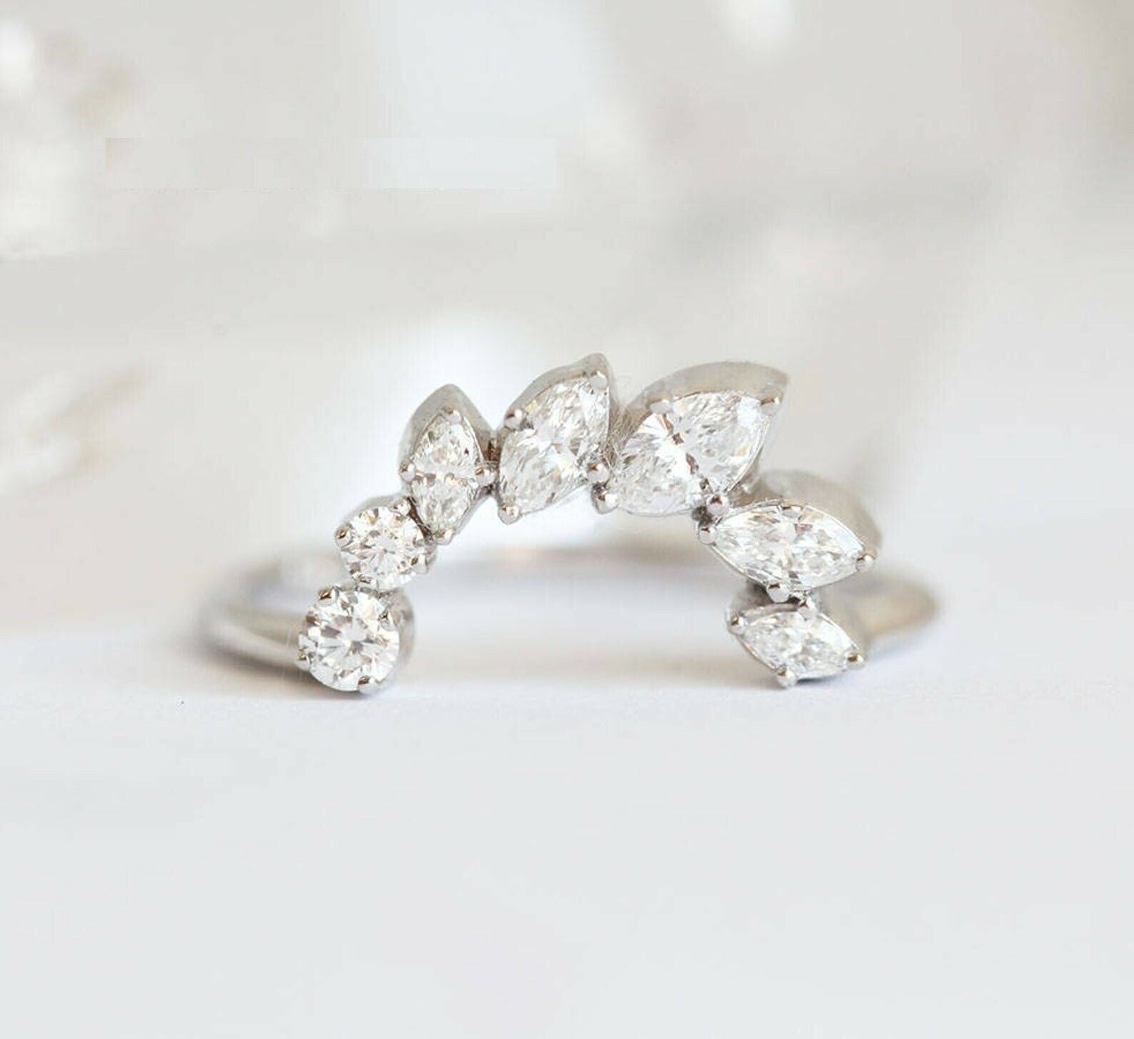 1.5ct Marquise Cut Diamond Engagement Ring 14k White Gold Finish Unique Crown