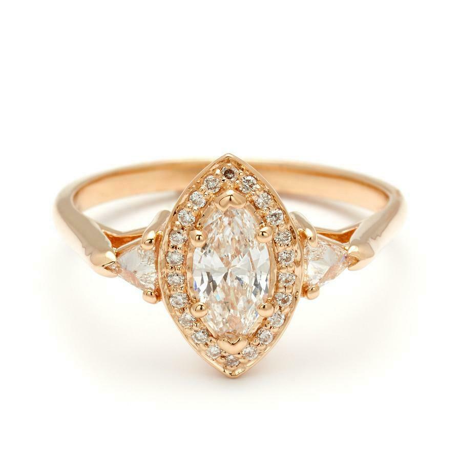 1.5ct Marquise Cut Diamond Engagement Ring 14k Yellow Gold Finish Halo Trilogy