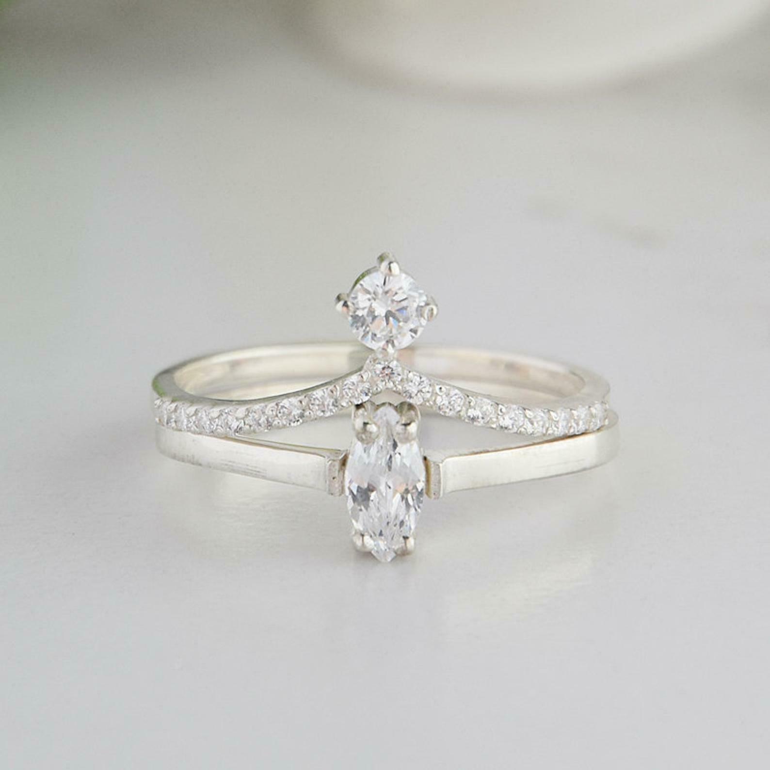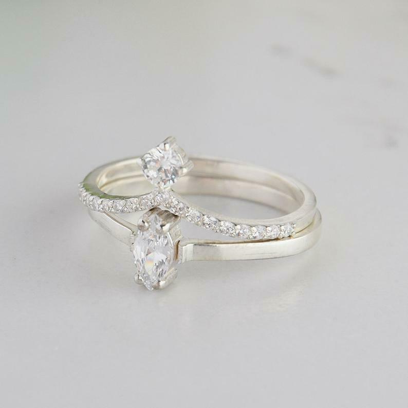 1.5ct Marquise Cut Diamond Engagement Ring Curved Bridal Set 14k White Gold Over