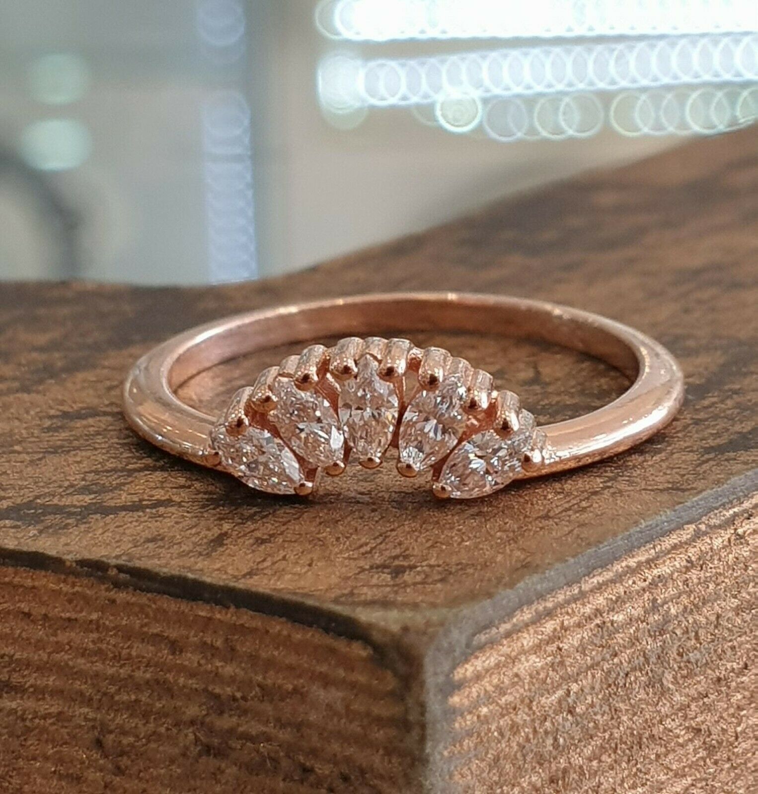 1.5ct Marquise Cut Diamond Wedding Band Five Stone Stackable 14k RoseGold Finish