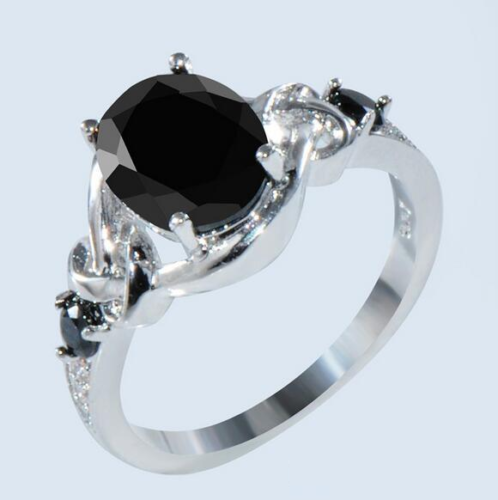 1.5ct Oval Black Diamond Elegant Solitaire Engagement Ring 14K White Gold Over