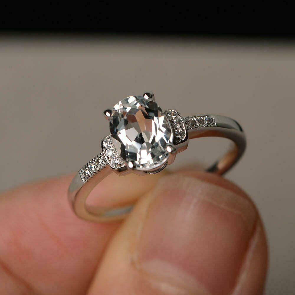 1.5ct Oval Cut Diamond Engagement Ring 14k White Gold Finish Accents Solitaire