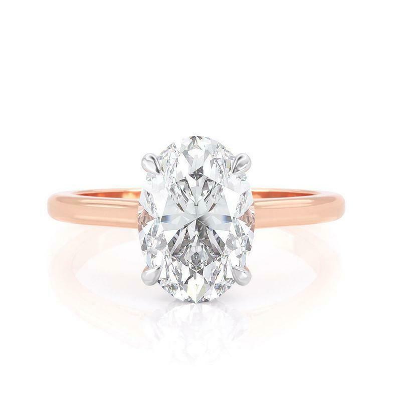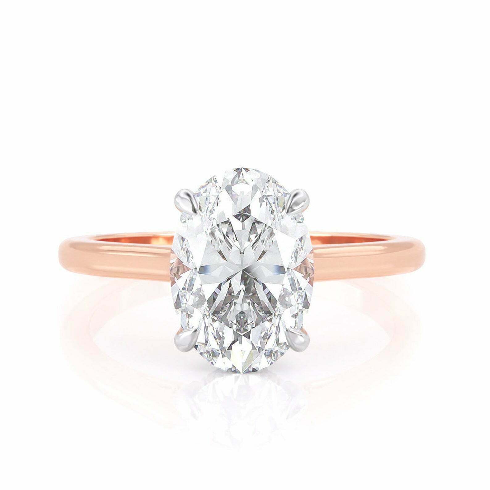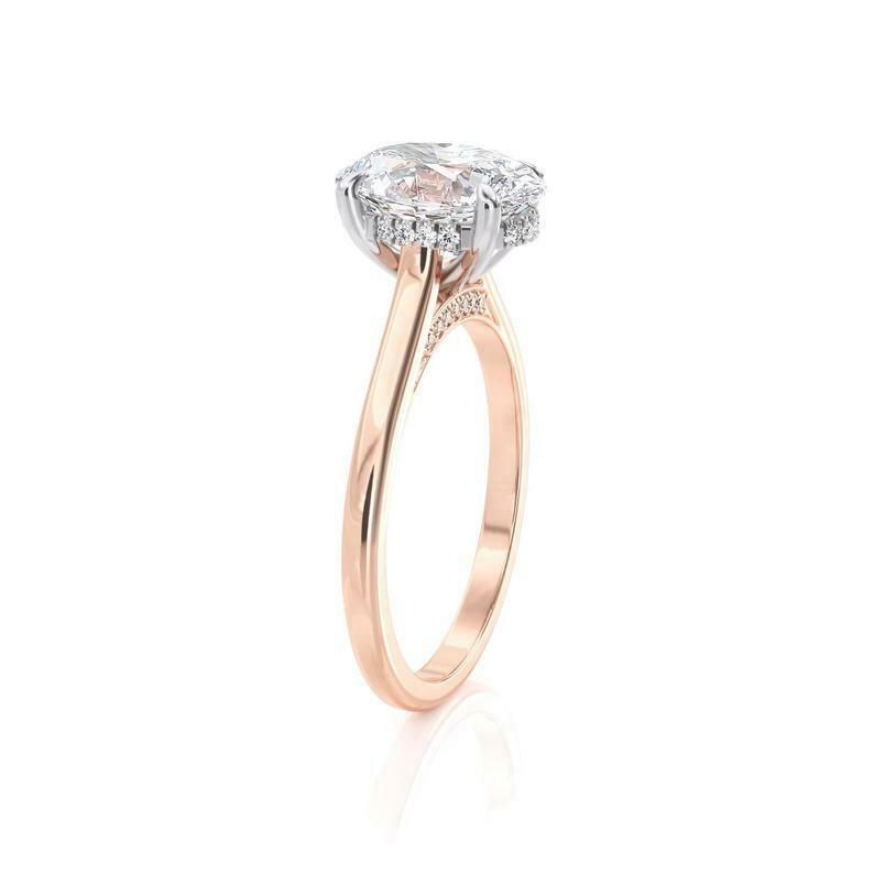 1.5ct Oval Cut Diamond Engagement Ring Hidden Halo Solitaire 14k Dual Gold Over