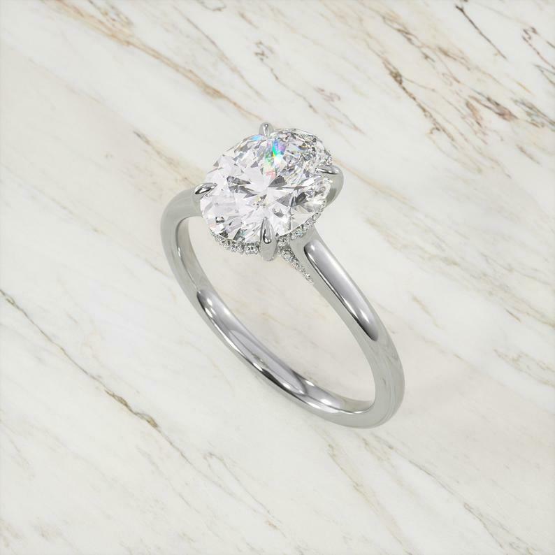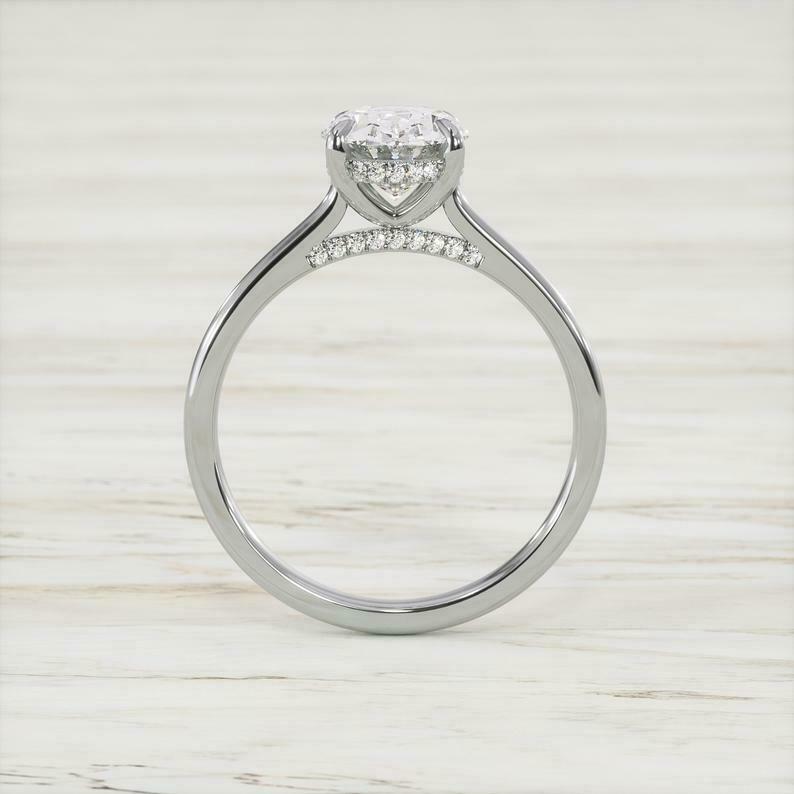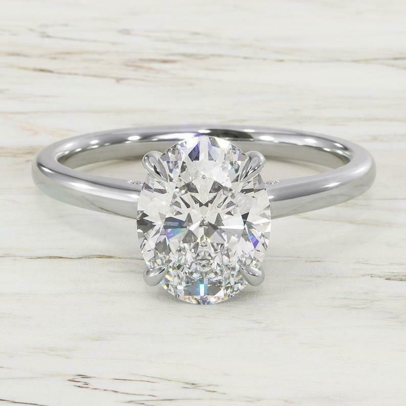 1.5ct Oval Cut Diamond Engagement Ring Hidden Halo Solitaire 14k White Gold Over