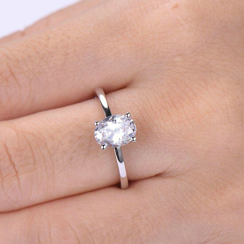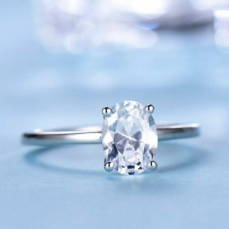 1.5ct Oval Cut Diamond Engagement Ring Solitaire Promise 14k White Gold Finish