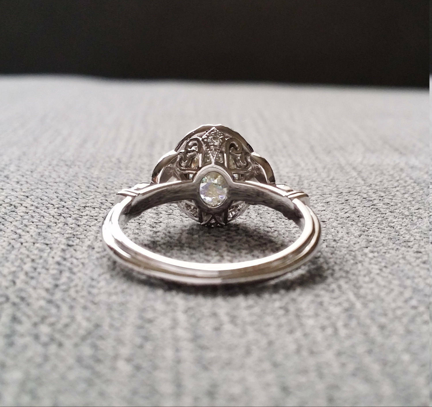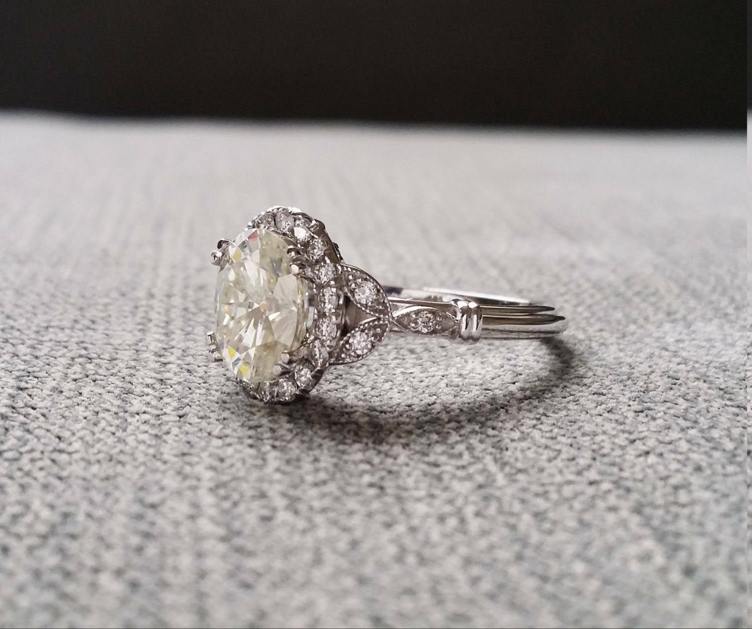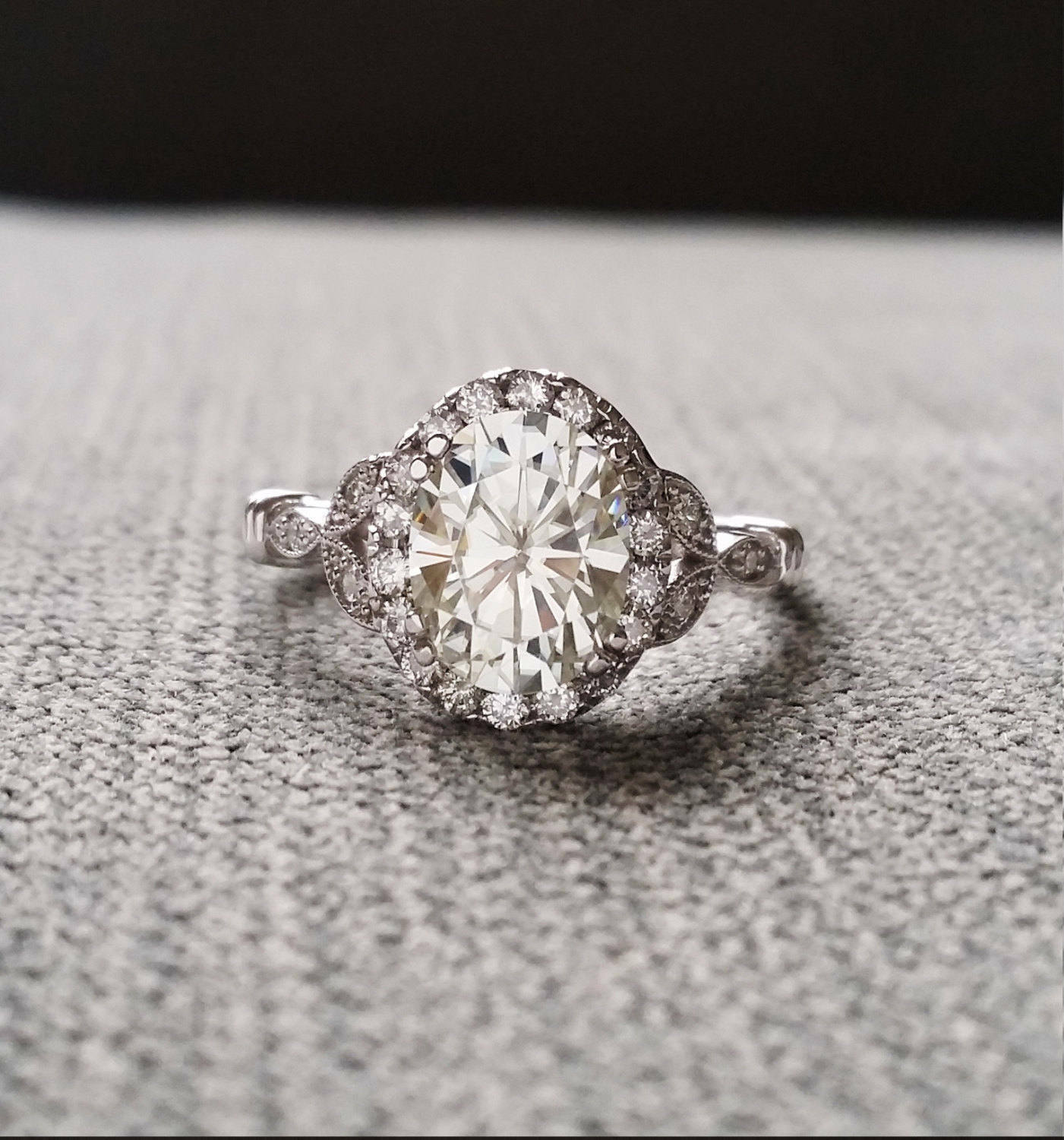 1.5Ct Oval Cut Diamond Leaf Design Accent Engagement Ring 18K White Gold Finish