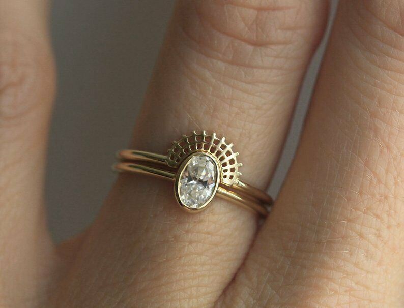 1.5ct Oval Cut Diamond Solitaire Engagement Ring Crown Band 14k Yellow Gold Over