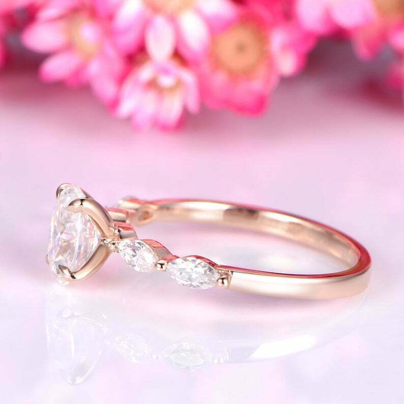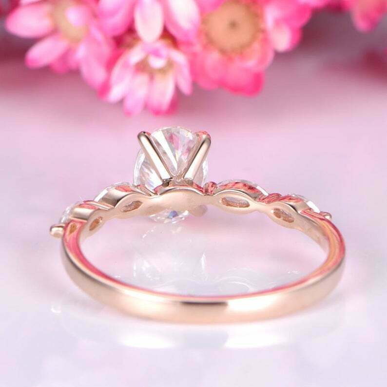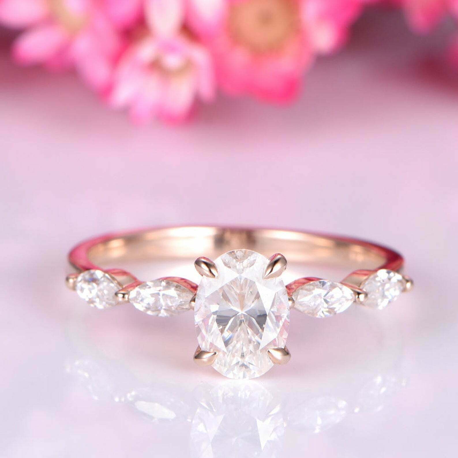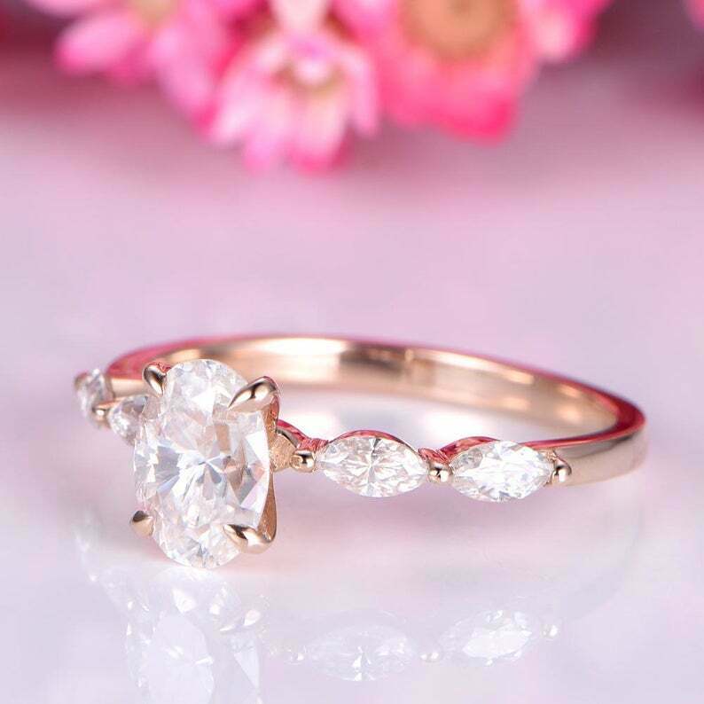 1.5ct Oval Cut Diamond Solitaire Ring 14k Rose Gold Finish with Marquise Accents