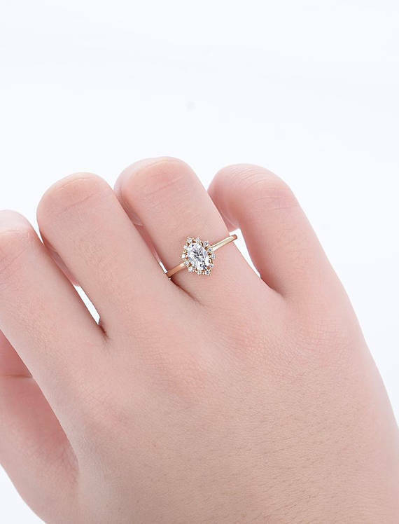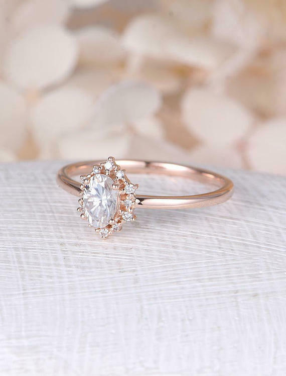 1.5Ct Oval Cut DVVS1 Diamond Floral Halo Engagement Ring 14K Rose Gold Finish