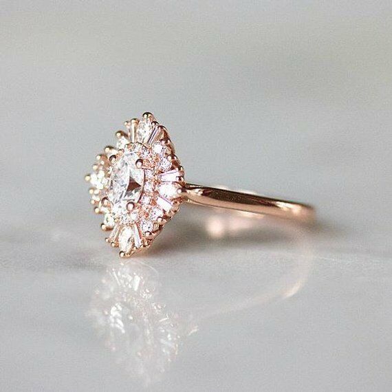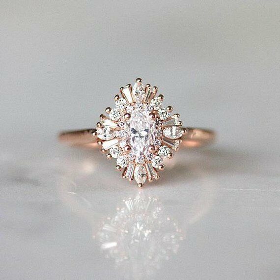 1.5ct Oval Cut VVS1 D Diamond Floral Engagement Ring 14k Rose Gold Finish