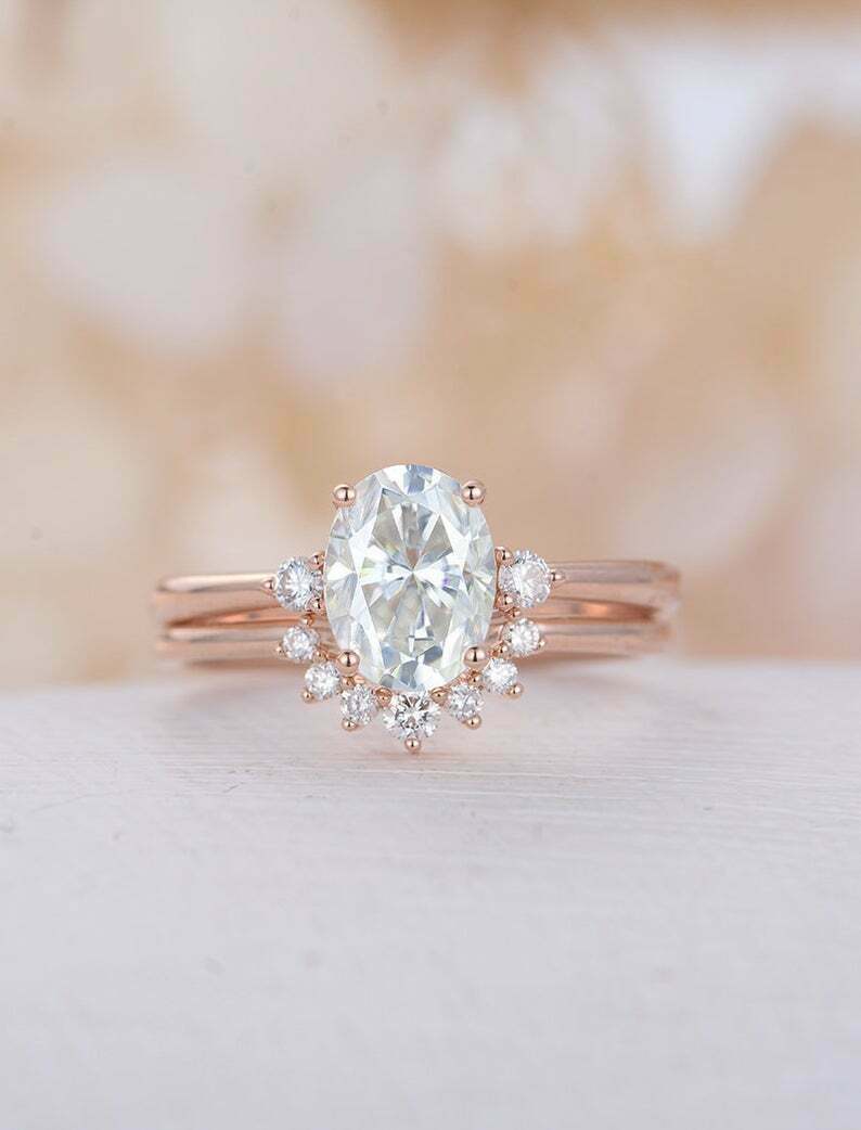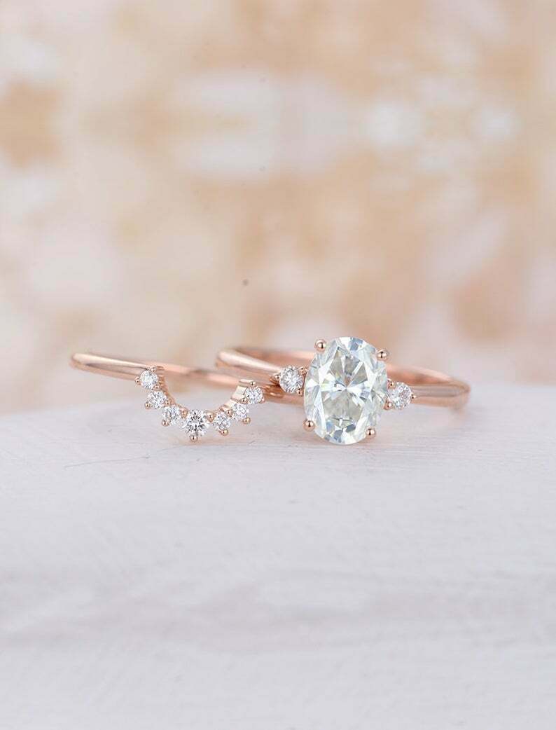 1.5ct Oval Diamond Engagement Ring Curved Bridal Wedding Set 14k Rose Gold Over