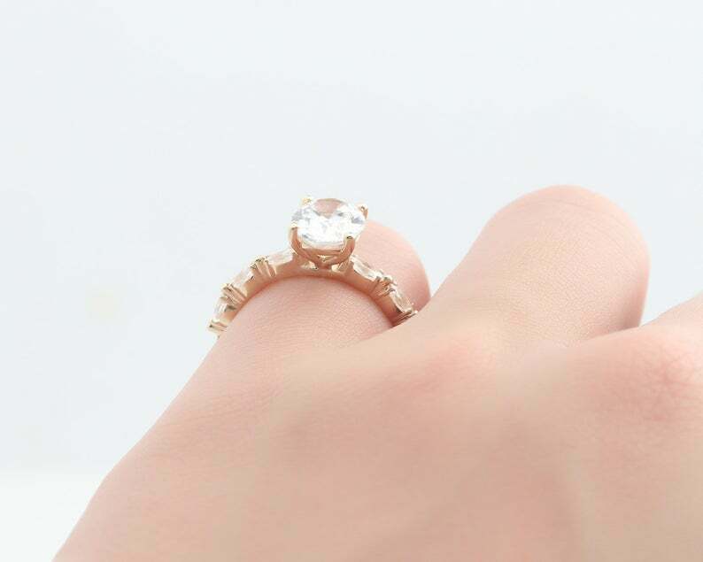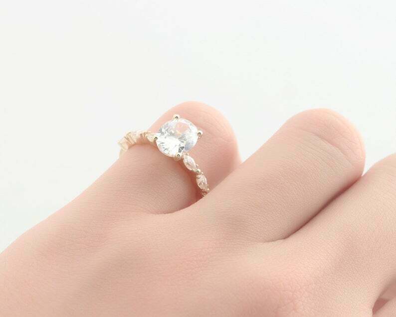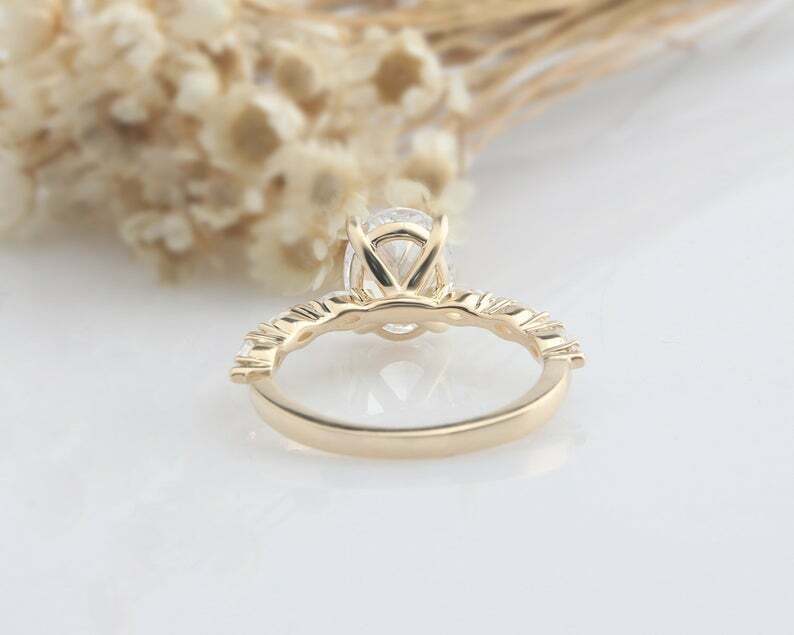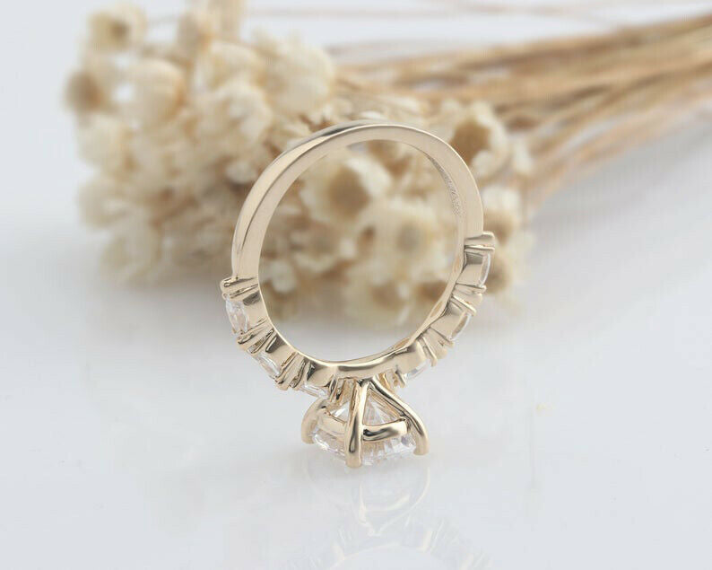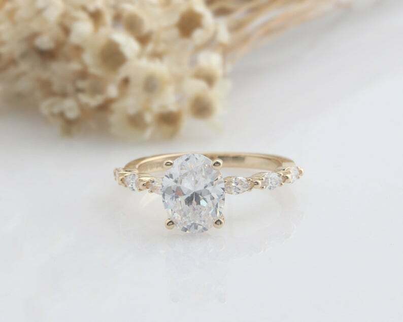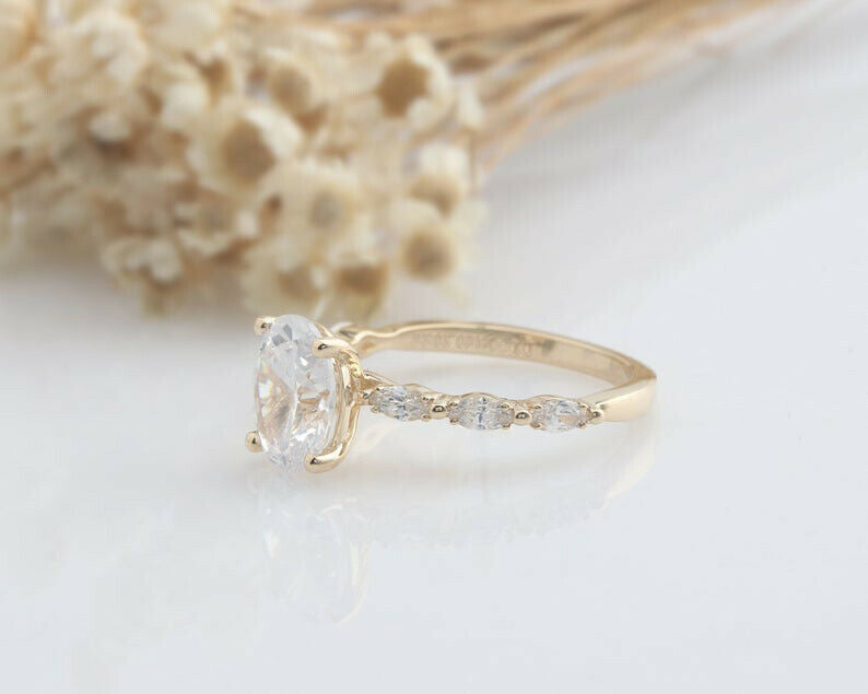 1.5ct Oval Cut Diamond Engagement Ring Marquise Accent Solitaire 14k Yellow Gold Over