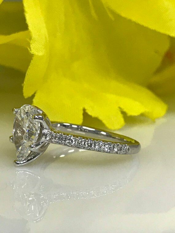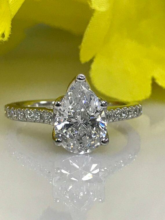 1.5ct Pear Cut Diamond Accents Solitaire Engagement Ring 14k White Gold Finish