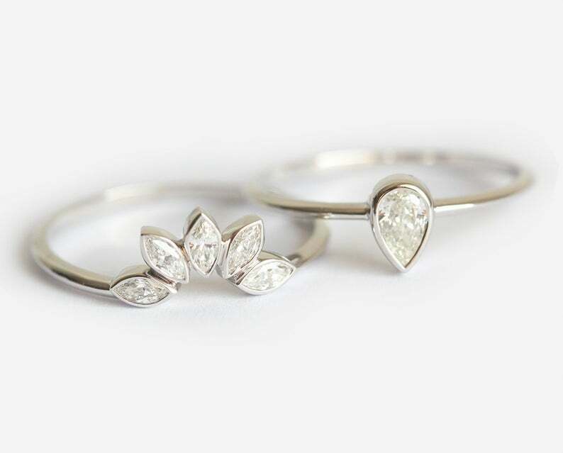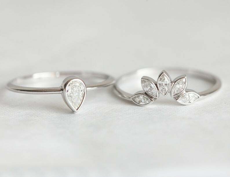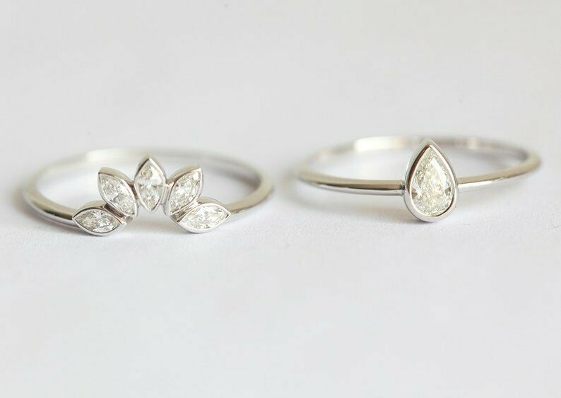 1.5ct Pear Cut Diamond Engagement Ring 14k White Gold Finish Crown Bridal Set