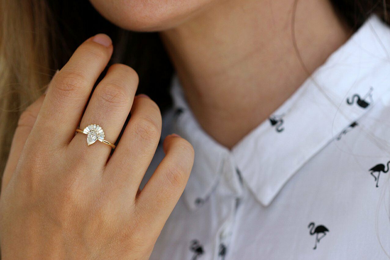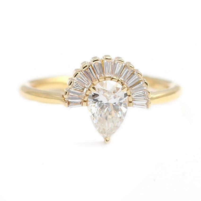 1.5ct Pear Cut Diamond Engagement Ring 14k Yellow Gold Finish Art Deco Crown