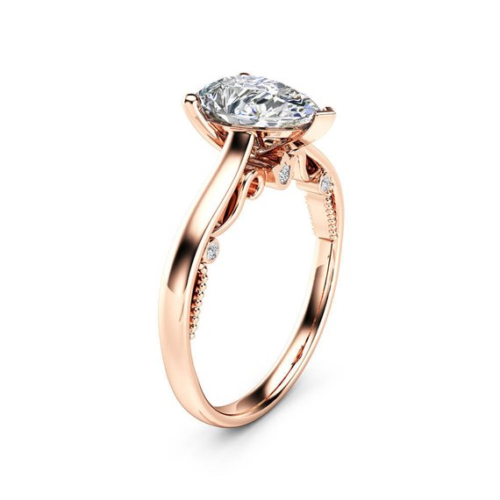 1.5ct Pear Cut VVS1 Diamond Engagement Ring 14k Rose Gold Over Classic Solitaire