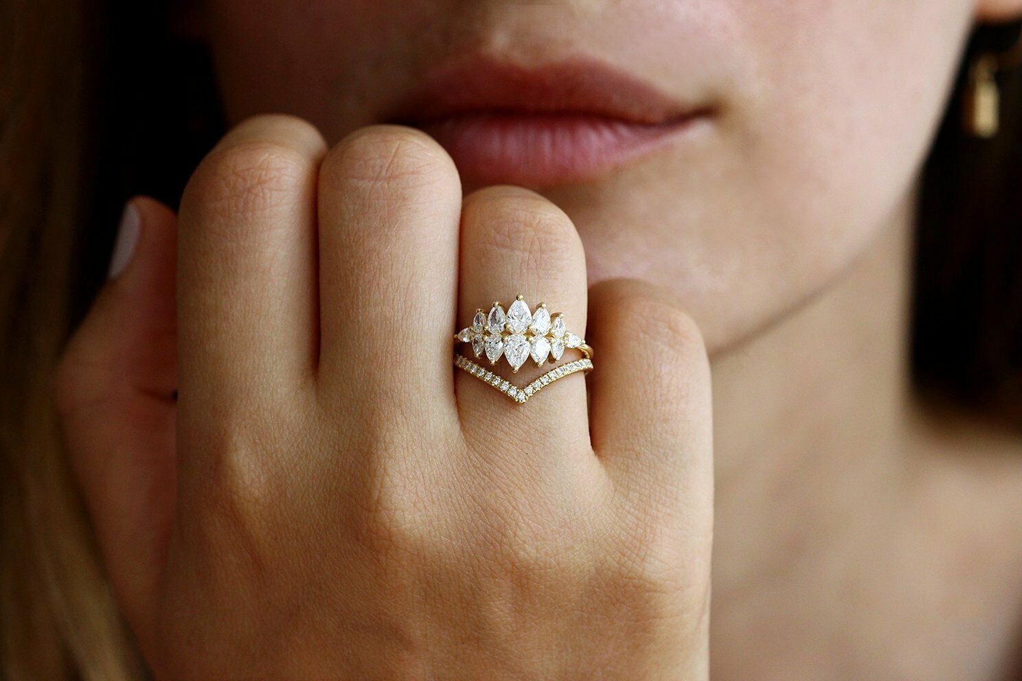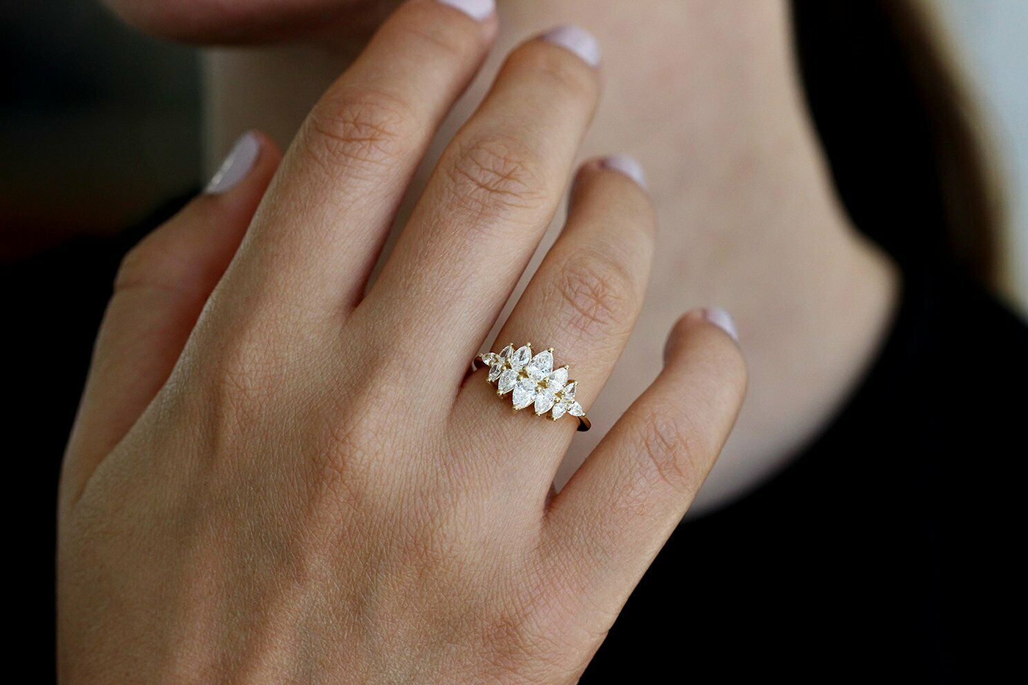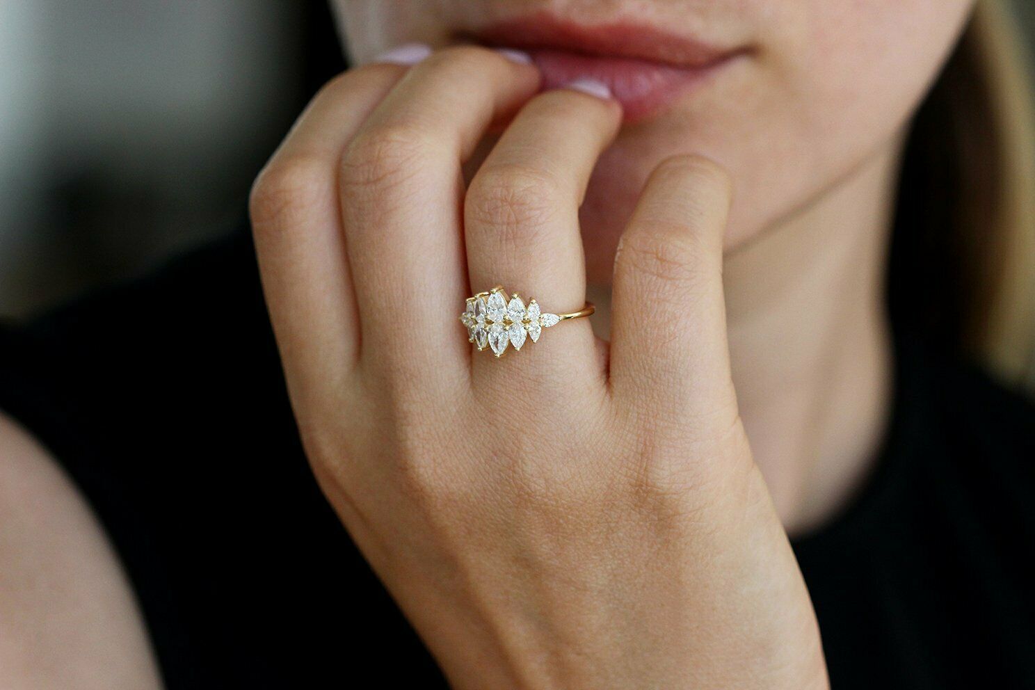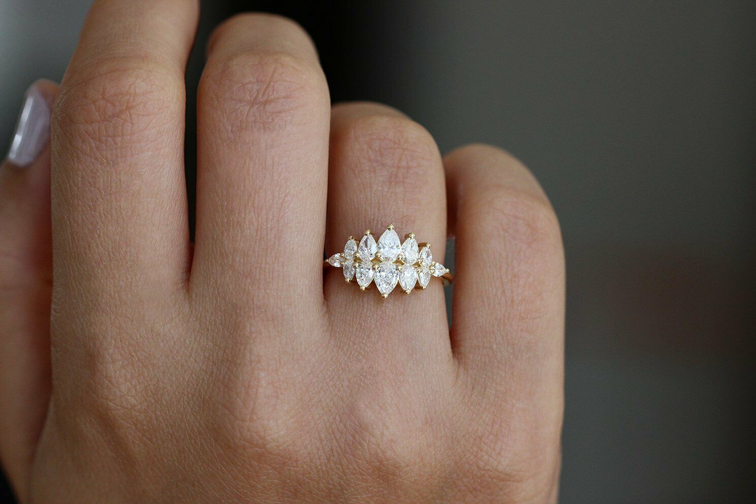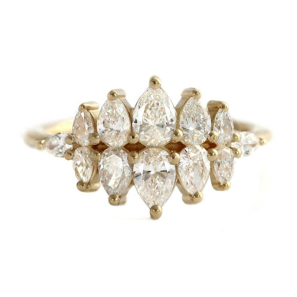 1.5ct Pear Cut VVS1D Diamond Engagement Ring 14k Yellow Gold Finish Cluster