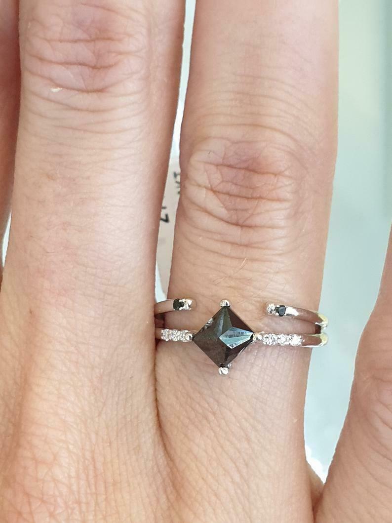 1.5ct Princess Black Diamond Solitaire with Accent Split Band 14k WhiteGold Over