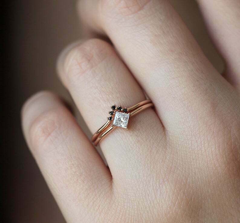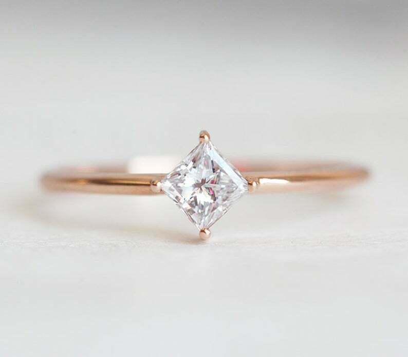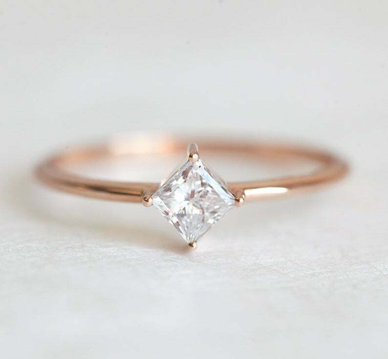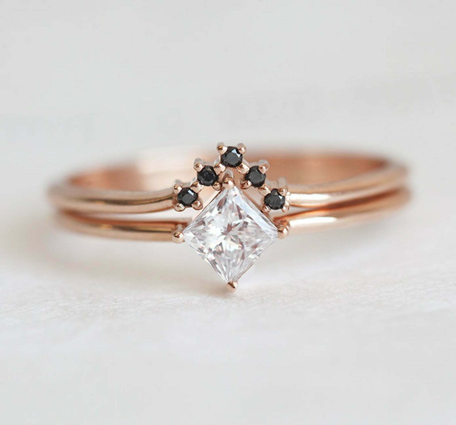 1.5ct Princess Cut Diamond Engagement Ring 14k Rose Gold Finish Bridal Set Band