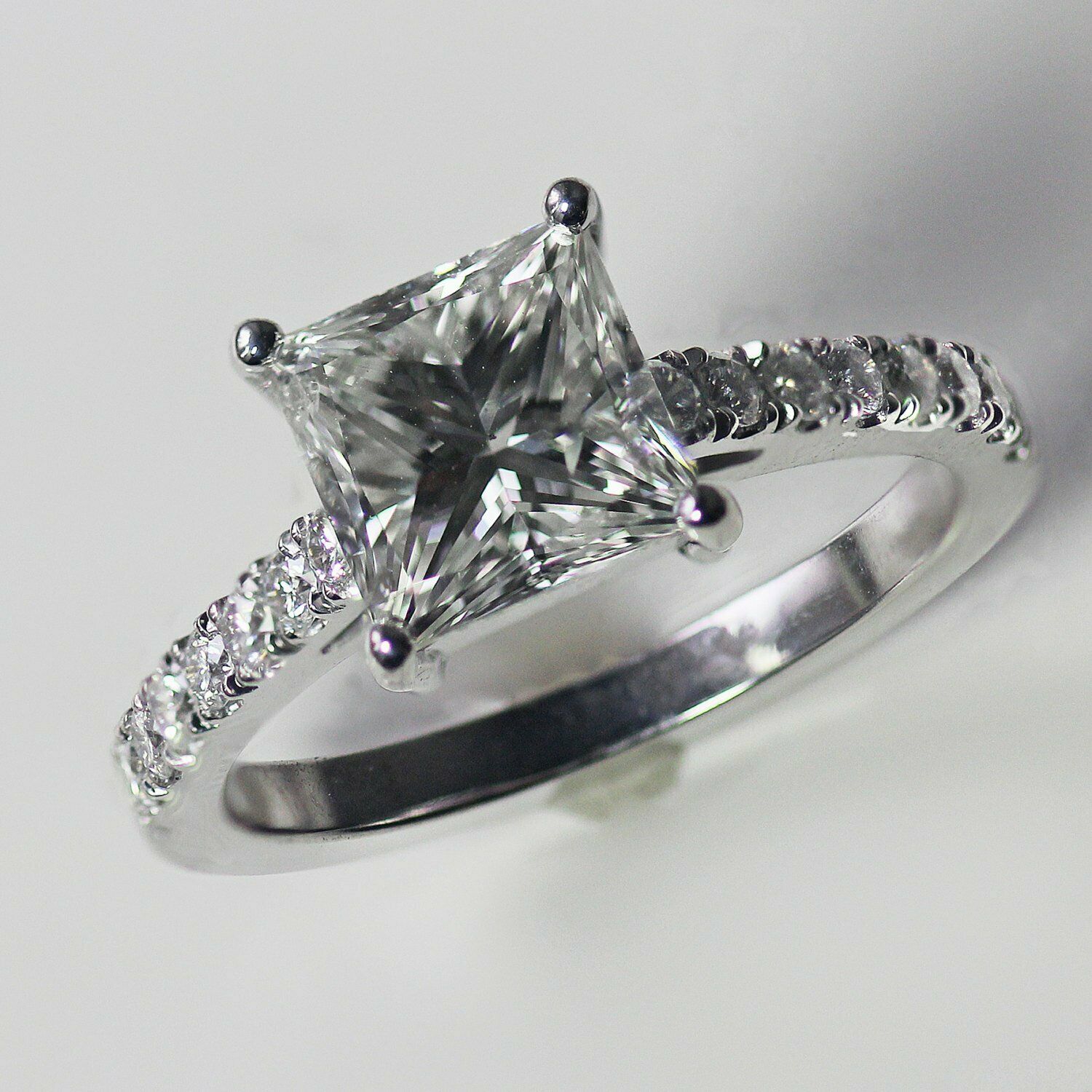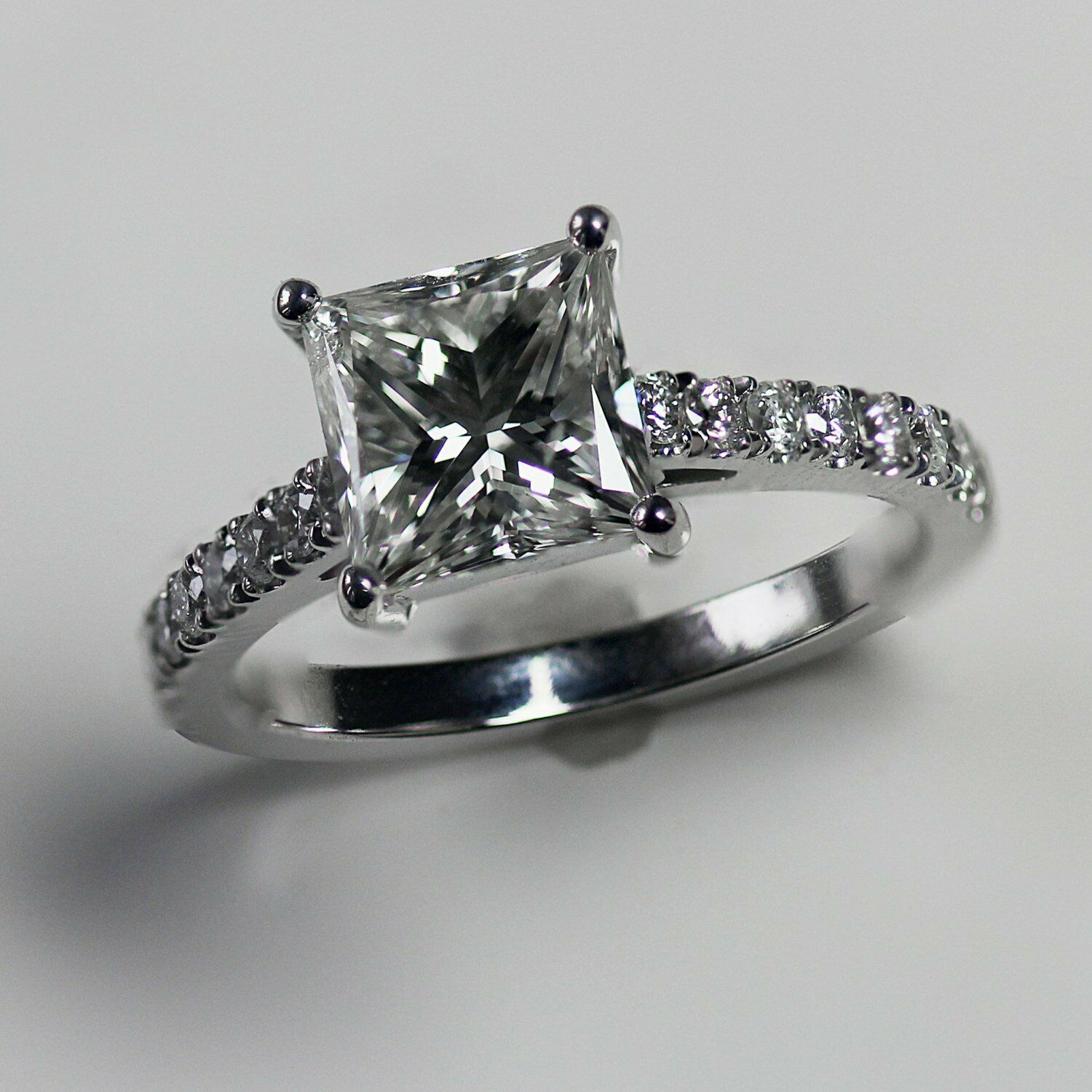 1.5ct Princess Cut Diamond Engagement Ring Accents Solitaire 18k White Gold Over