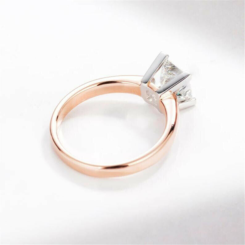 1.5ct Princess Cut Diamond Engagement Ring Classic Solitaire 14k Dual Gold Finish