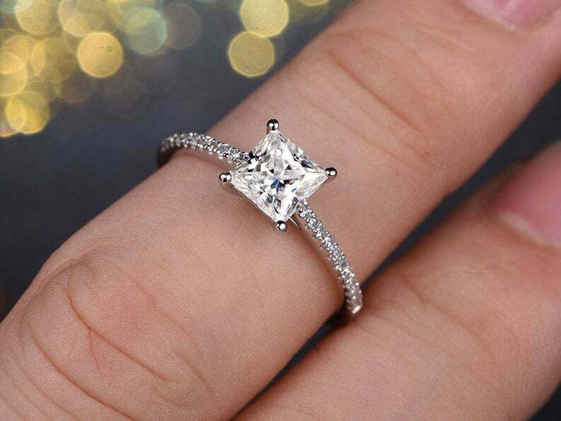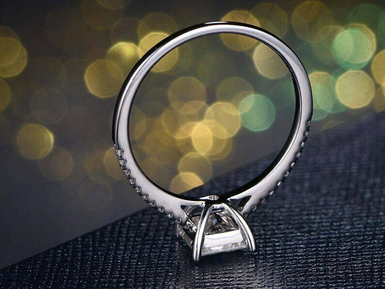 1.5ct Princess Cut Diamond Solitaire Ring 14k White Gold Over with Round Accents