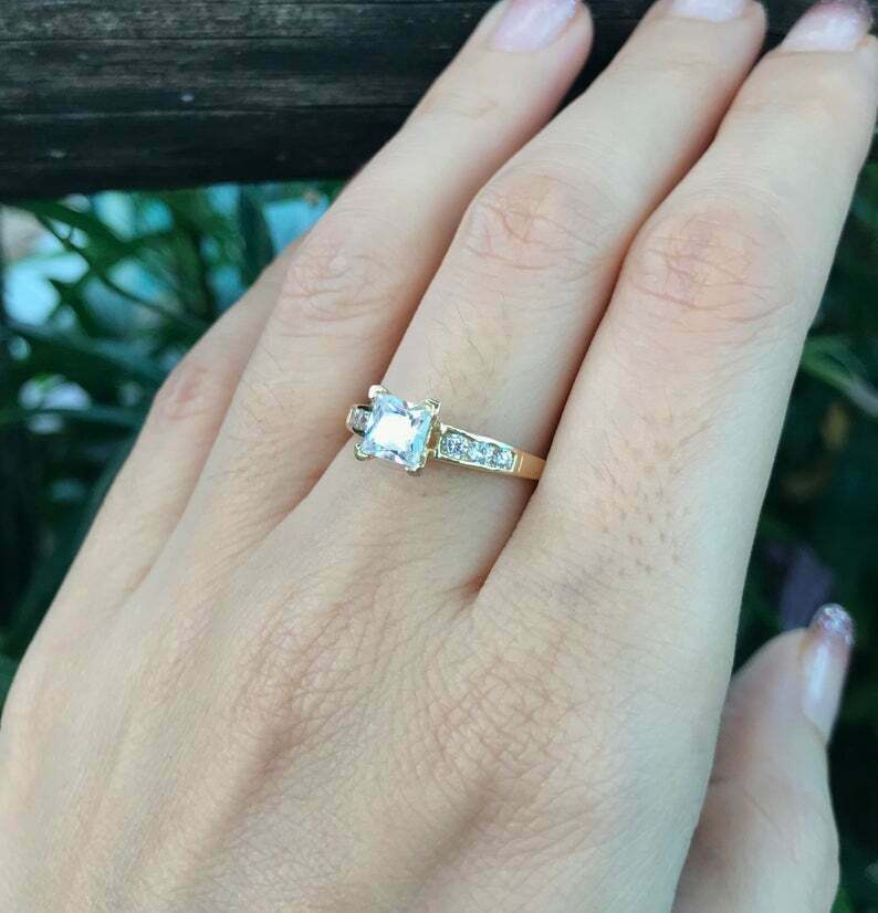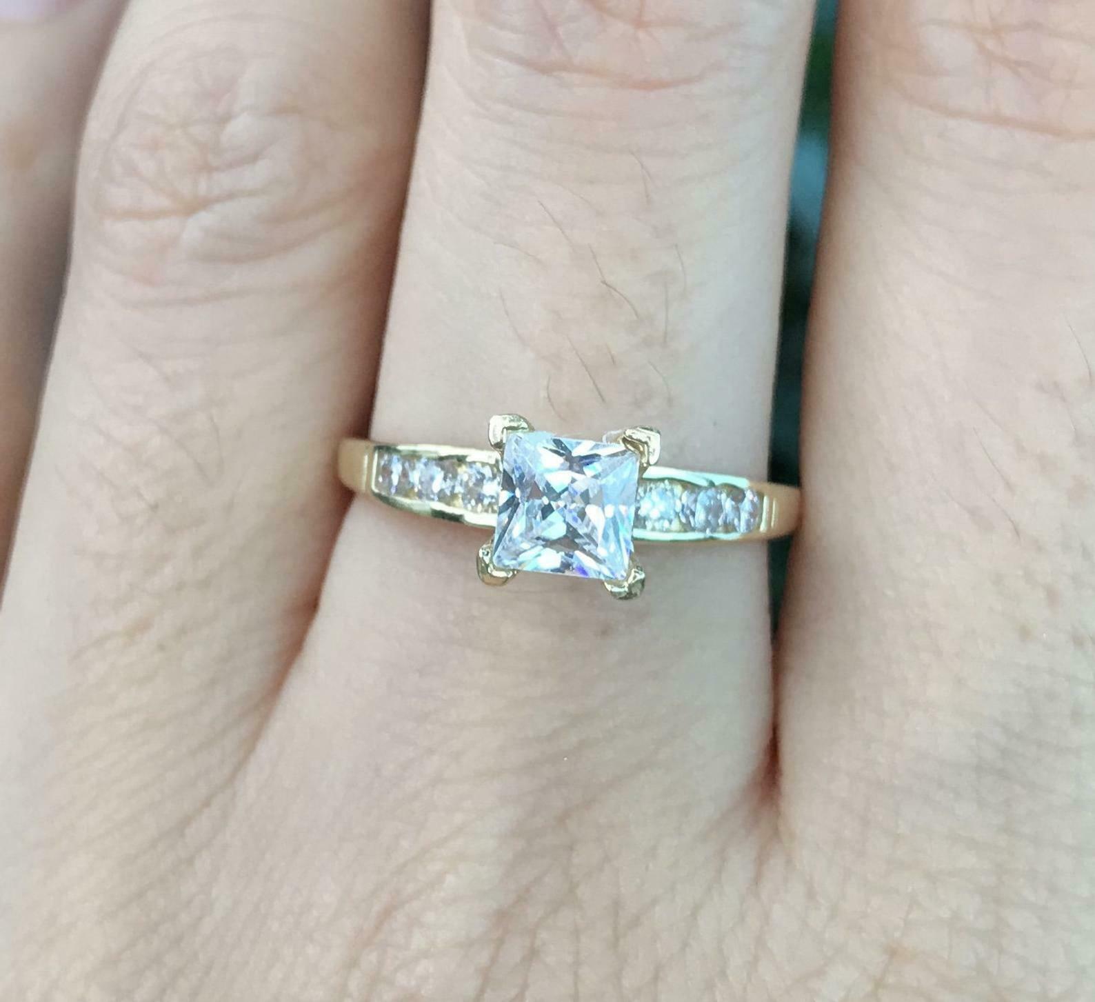 1.5ct Princess Cut Diamond Solitaire Ring 14k Yellow Gold Over with Round Accent
