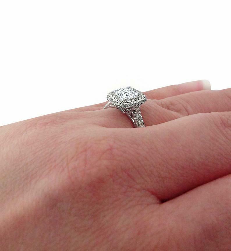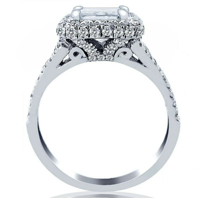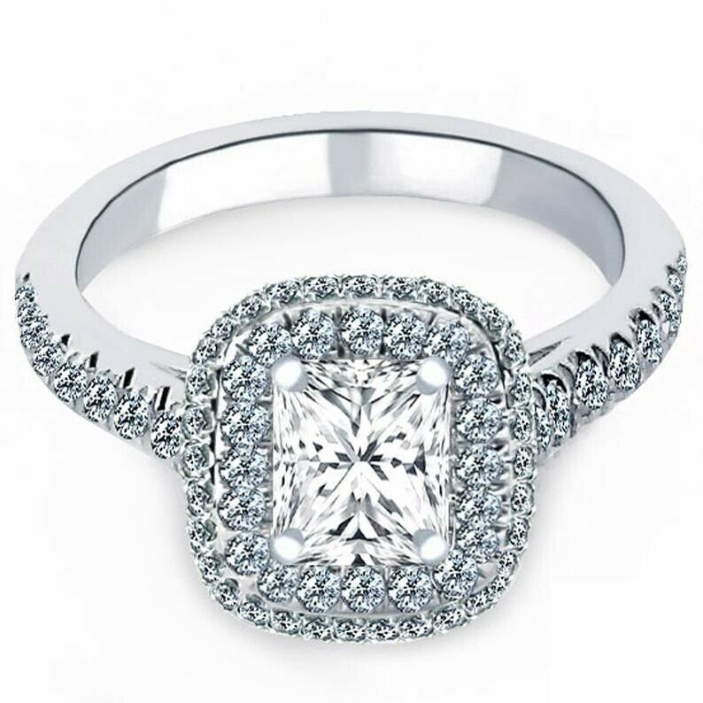 1.5ct Princess Cut Diamond Engagement Ring Round Accent Dual Halo 14k White Gold Over