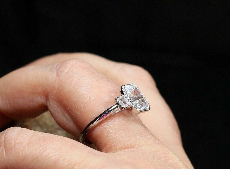 1.5ct Radiant Cut Diamond Engagement Ring Solitaire Trilogy 14k White Gold Finish