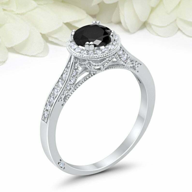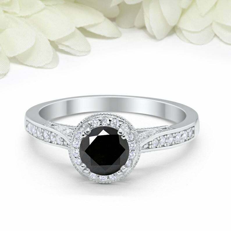 1.5ct Round Cut Black Diamond Halo Vintage Women Engagement Ring 14k White Gold Over