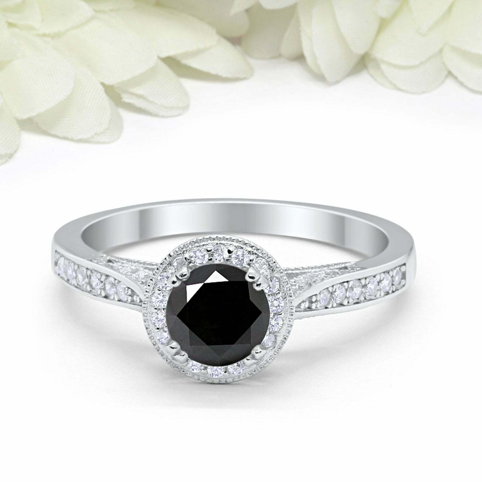 1.5ct Round Black Diamond Halo Vintage Women Engagement Ring 14k White Gold Over
